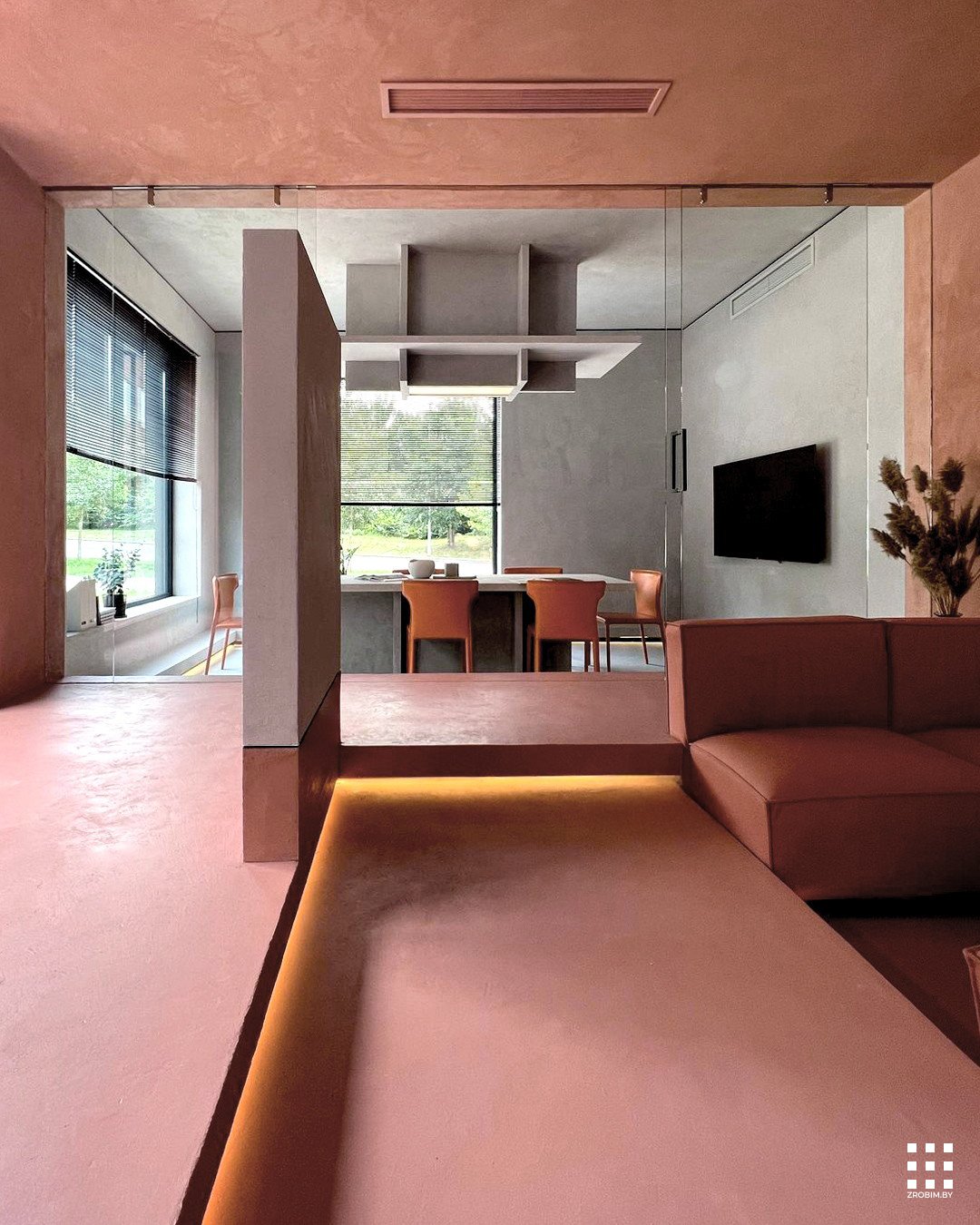 وتنقسم مساحة المكتب بأكملها إلى عدة مناطق ، لتسليط الضوء على التي استخدمناها الرفع المنابر مع الإضاءة واللون لهجات. لذلك ، لدينا منطقة انتظار مشرقة عند المدخل ، على الجانب الأيسر منها توجد غرفة اجتماعات أكثر هدوءا خلف حاجز زجاجي لعزل أنفسنا عن أصوات المكتب ، وعلى الجانب الأيمن توجد منطقة عمل مشرقة في المكتب مع مطبخ صغير.