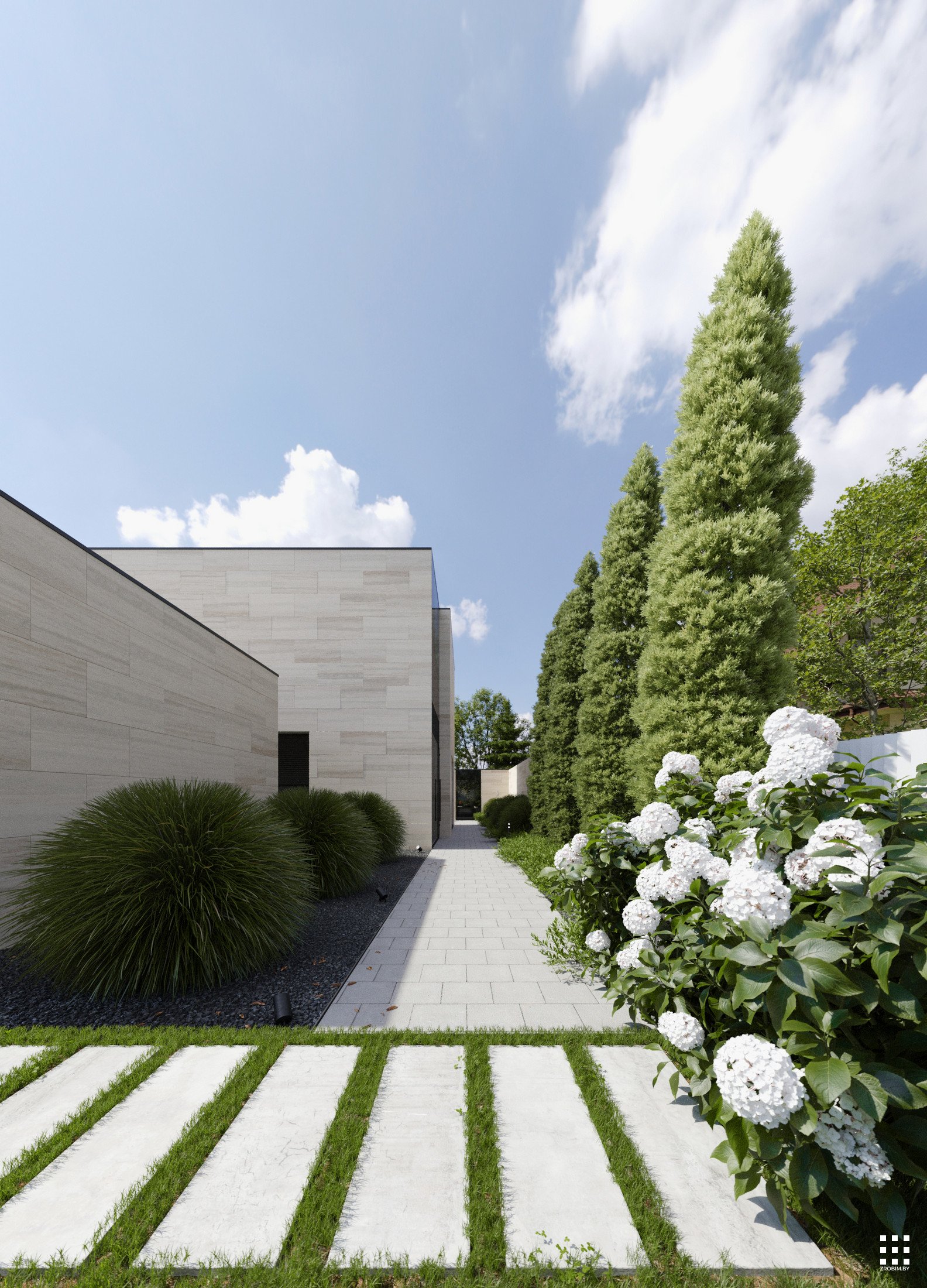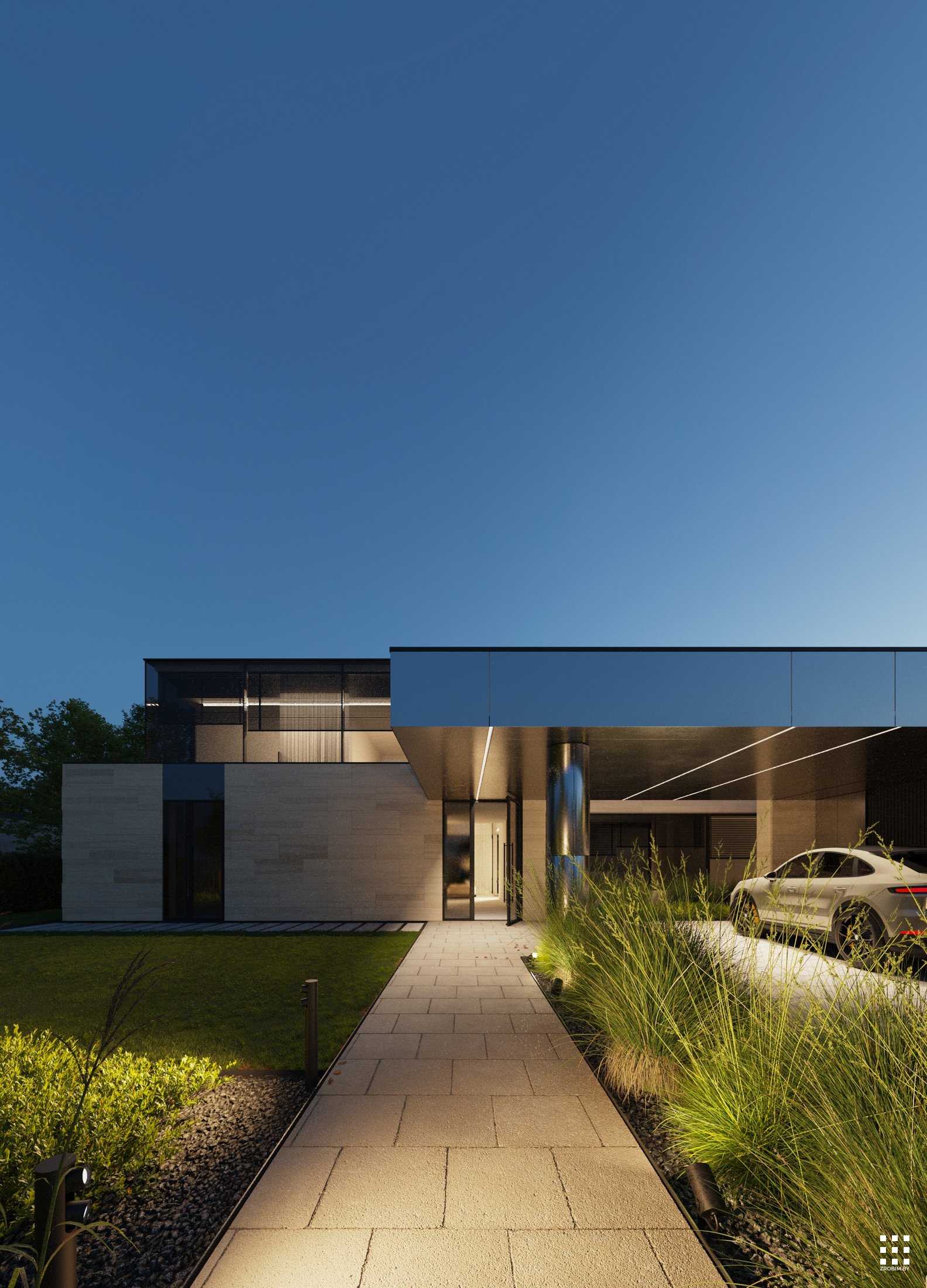 Минималистичный дом с акцентом на материальность и пропорции. Чёткие линии и сдержанная палитра позволяют архитектуре мягко вписаться в ландшафт и существующую застройку, не конкурируя с окружением, а логично продолжая его. Здесь мы используем один из наших ключевых приёмов: интровертный снаружи, открытый и светлый внутри.