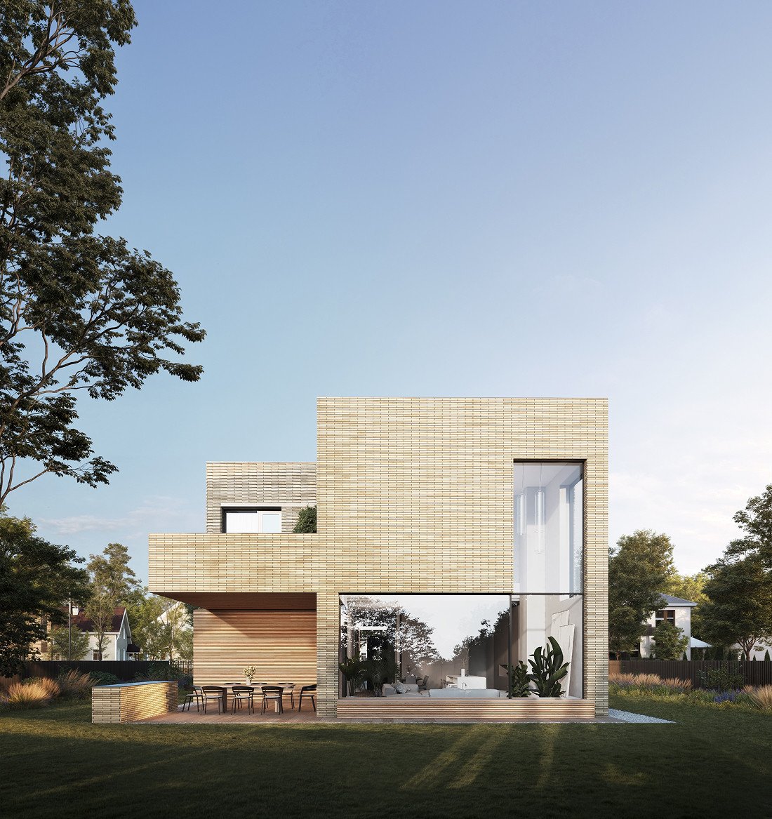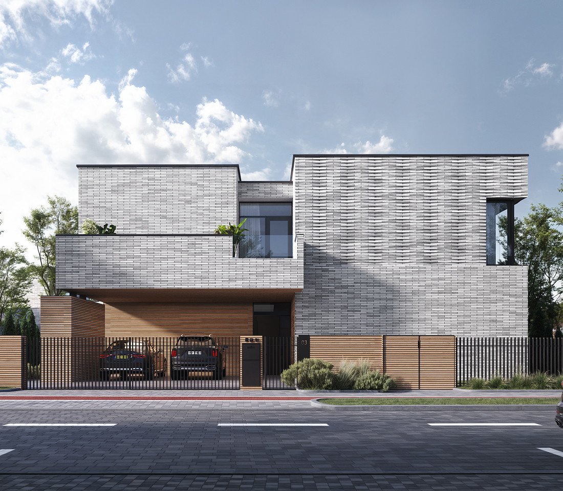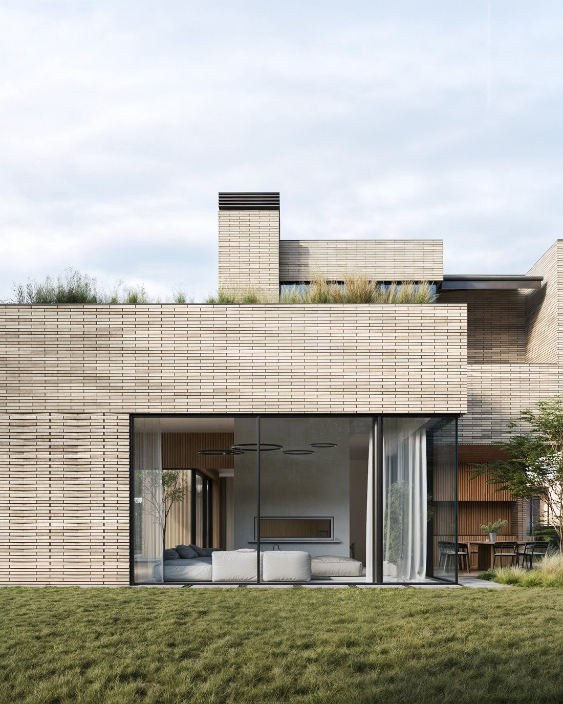Кирпичная монолитность контрастирует с теплом дерева, а гладкая глазурь скатных элементов добавляет современный акцент. Чередование витражей и камерных проёмов создаёт ритм, управляет светом и делает архитектуру живой и выразительной.