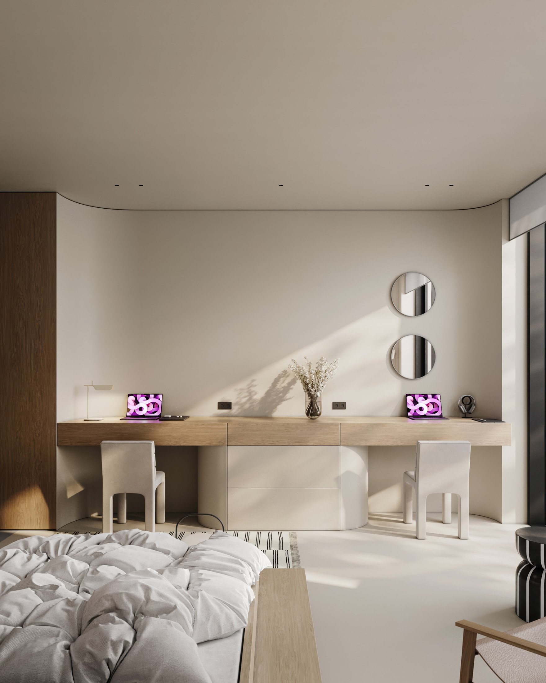 Максимум возможностей для индивидуального сценария жизни. На первом этаже предусмотрены отдельная спальня с санузлом и кабинет, на втором — мастер-спальня с приватным блоком. Пространство, где каждая деталь работает на удобство и статус.
