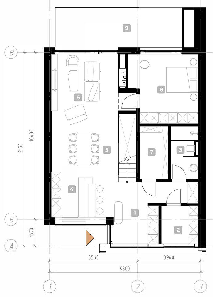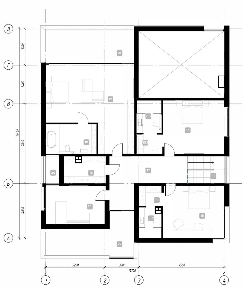 6. | Гостиная с рабочей зоной | 20,52 м² |