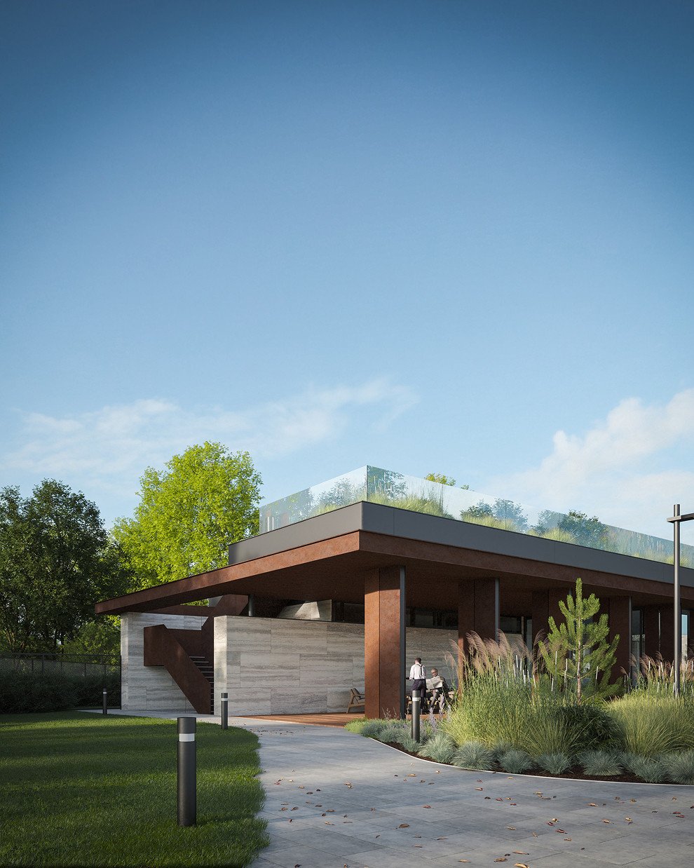 Каждый элемент здесь продуман с точки зрения сценариев использования: от приватных уголков для спокойного отдыха до открытых площадок для общения. Пространство работает мягко и естественно, создавая ощущение уюта без избыточной декоративности.
