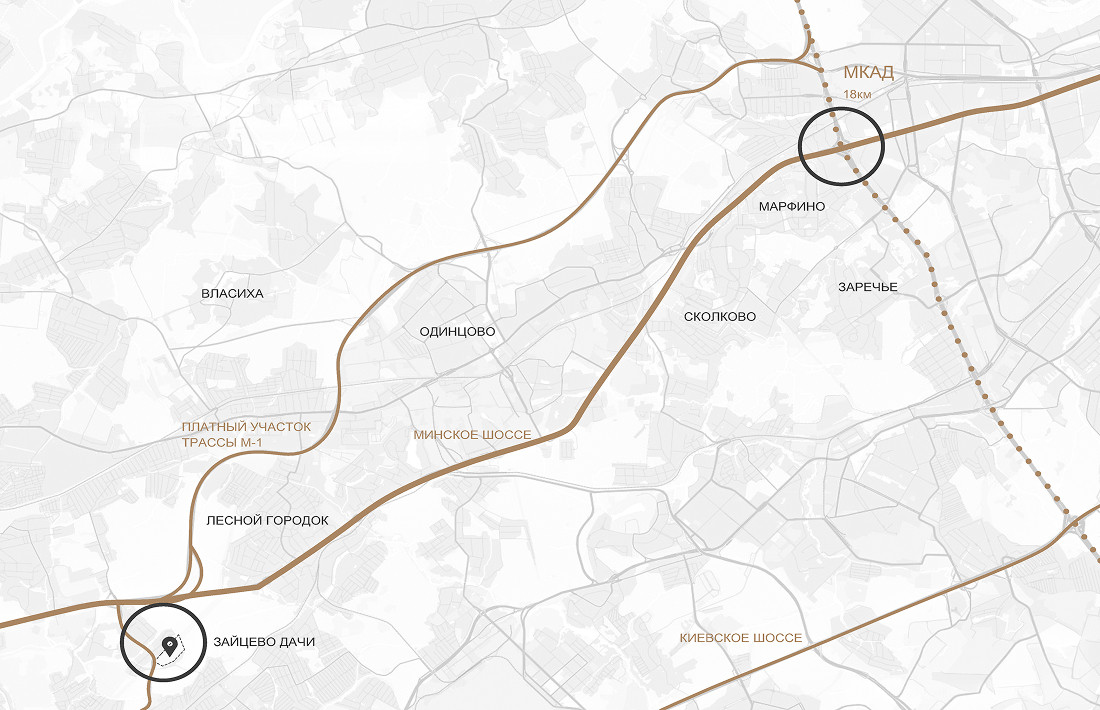 Непосредственная близость к мегаполису формирует высокий потенциал развития этой территории. Уже реализован новый транспортный коридор, обеспечивающий удобную связь с Минским шоссе. В перспективе вдоль участка новой магистрали, проходящей через деревню Зайцево, планируется формирование района многоквартирной застройки.
