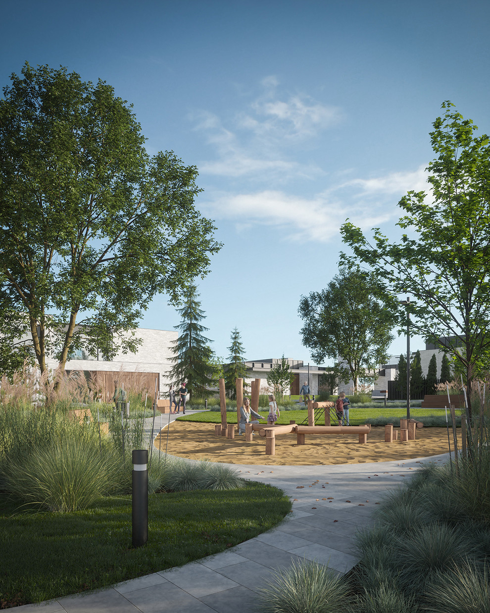 Общественная часть и благоустройство премиального посёлка формируют целостную среду, где архитектура, ландшафт и сценарии жизни работают как единая система. Это не набор функций, а продуманное пространство — сердце посёлка, притягивающее жителей и гостей.