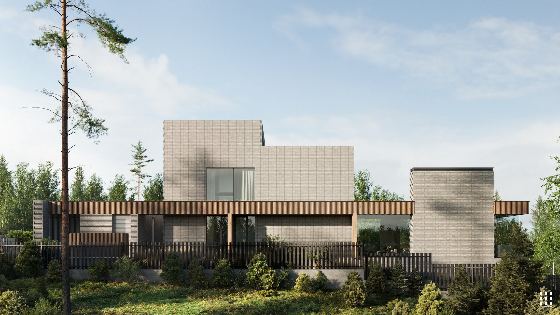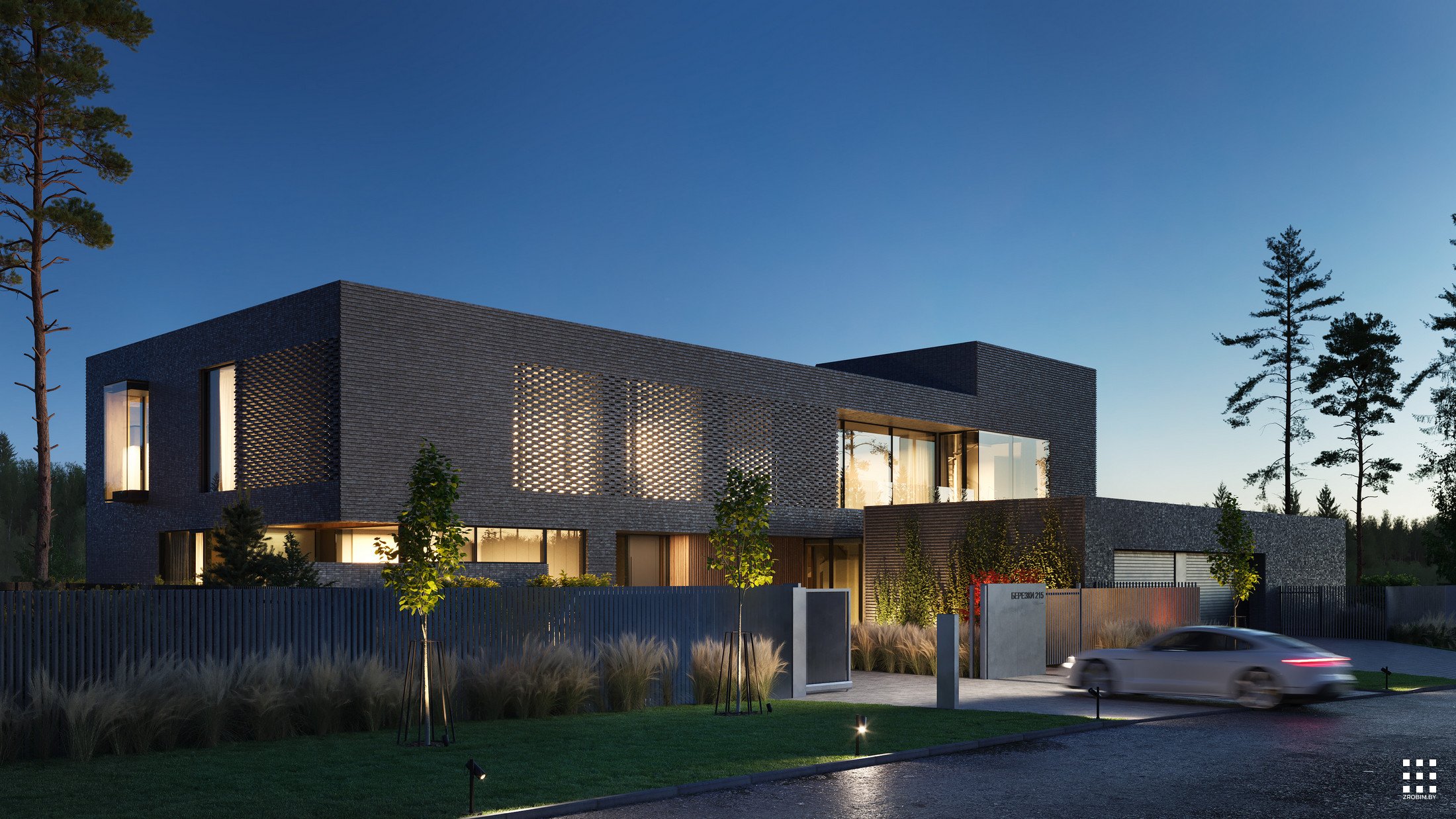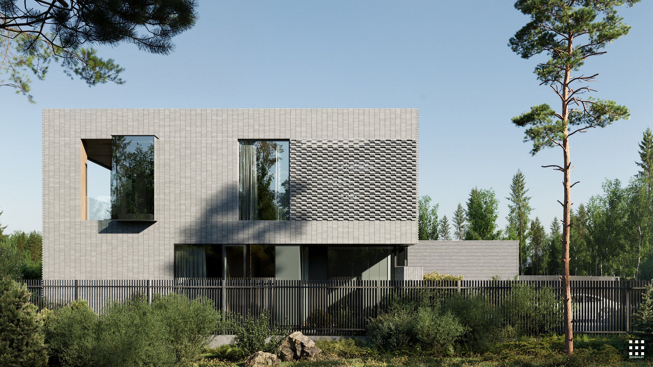 Калі мы думаем аб уражлівай архітэктуры, мы адразу ўспамінаем гэты праект. Клінкерная цэгла, арнаментальнасць, металічная горка, акно вышынёй 8 м у гасцінай, гараж са шкляным пераходам у асноўную частку дома - усё гэта злучылі разам і стварылі архітэктуру, у якой мінімалізм спалучаецца з самабытнасцю.
