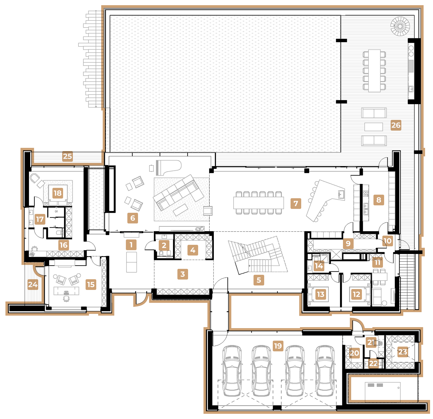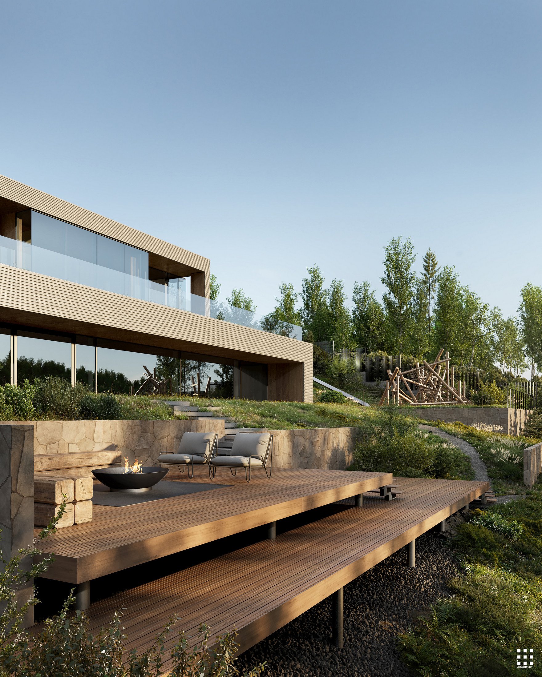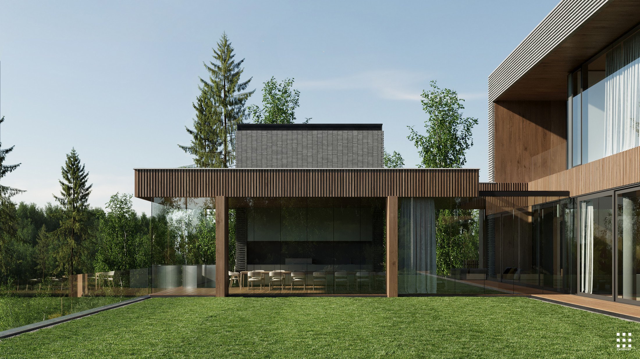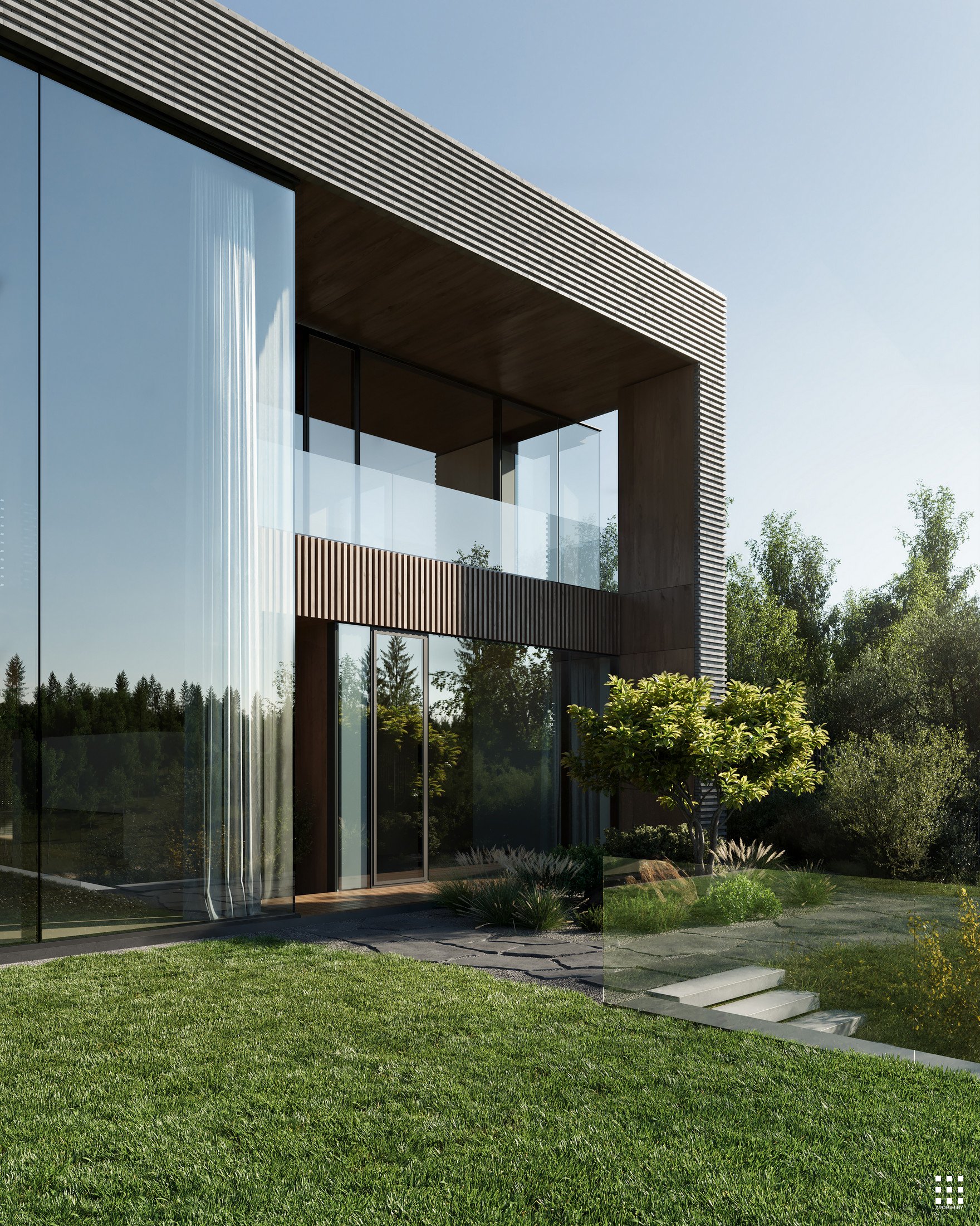 Кожны элемент тут працуе на адну мэту - стварыць тонкі баланс святла і цені, вады і каменя, прыватнасці і руху. Гэта хата, у якім прырода перастае быць фонам і становіцца часткай унутранага жыцця, ціха прарастаючы скрозь архітэктуру.