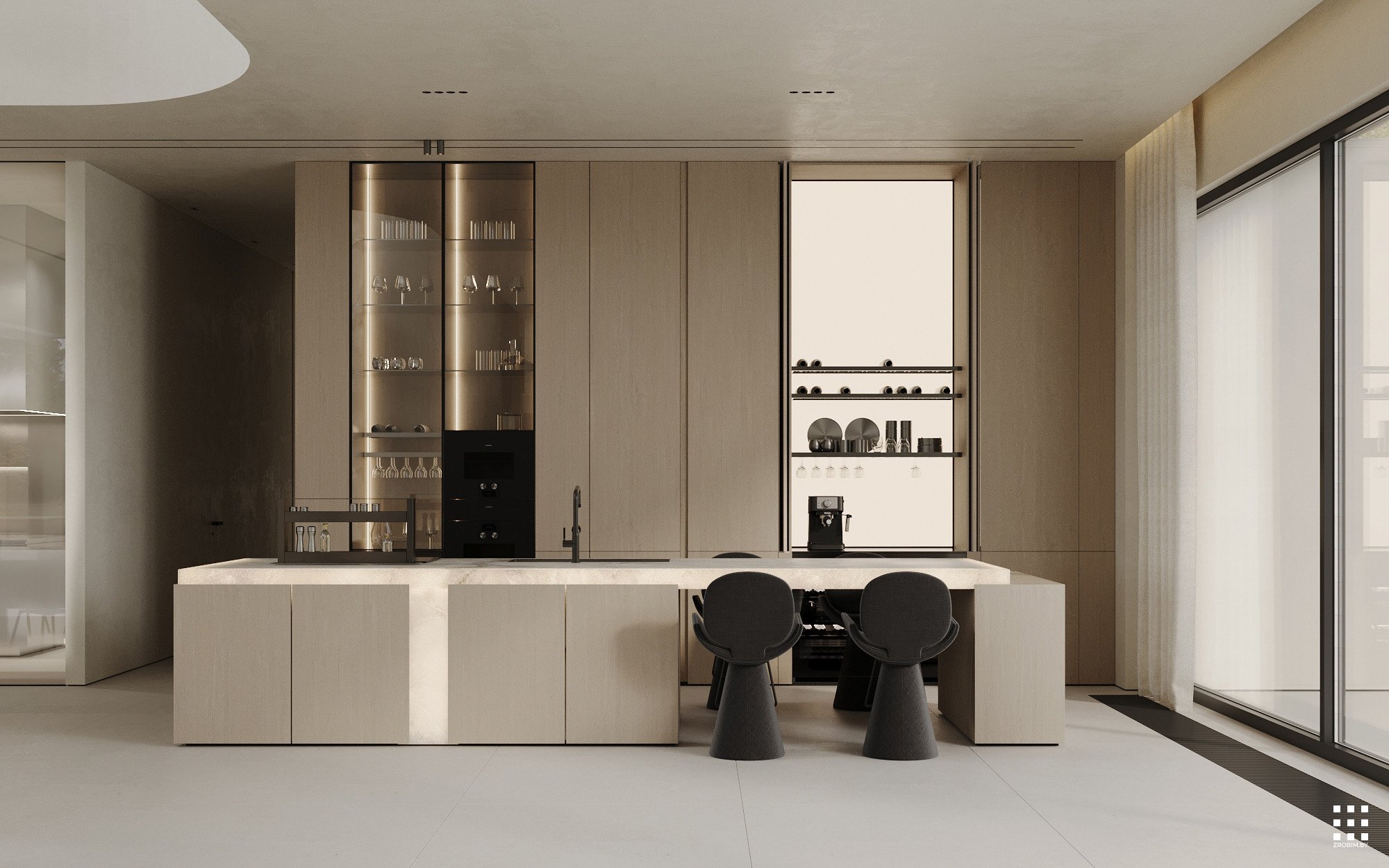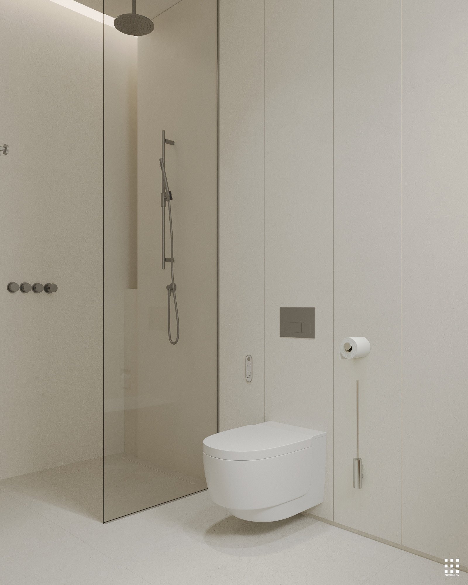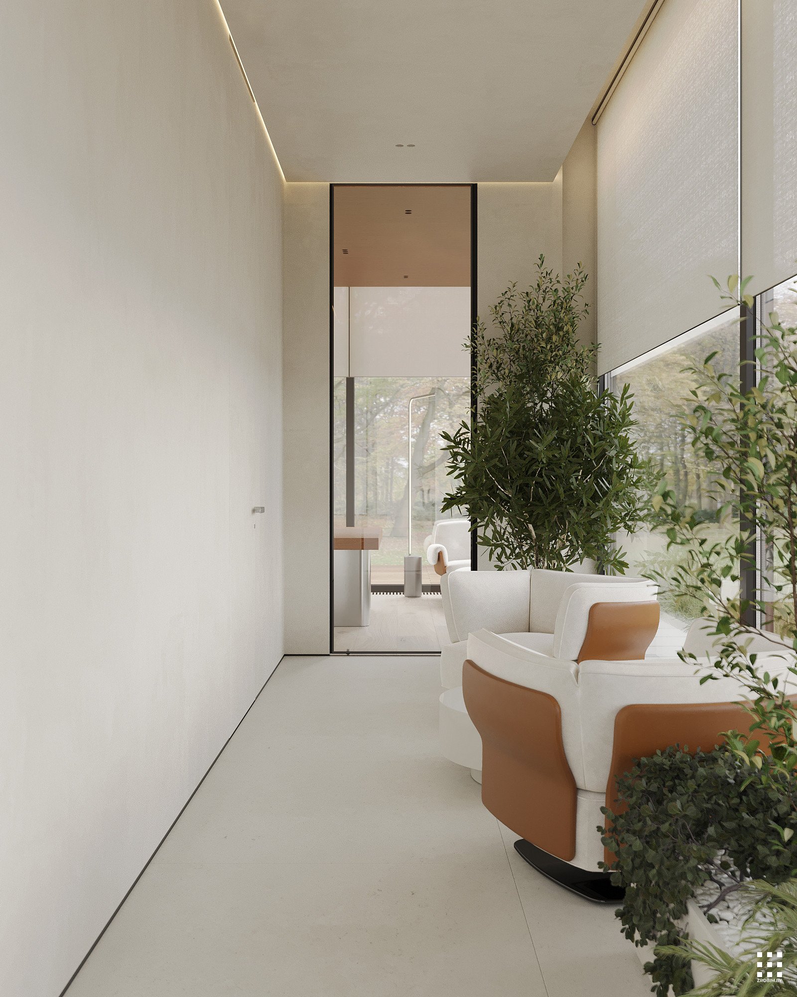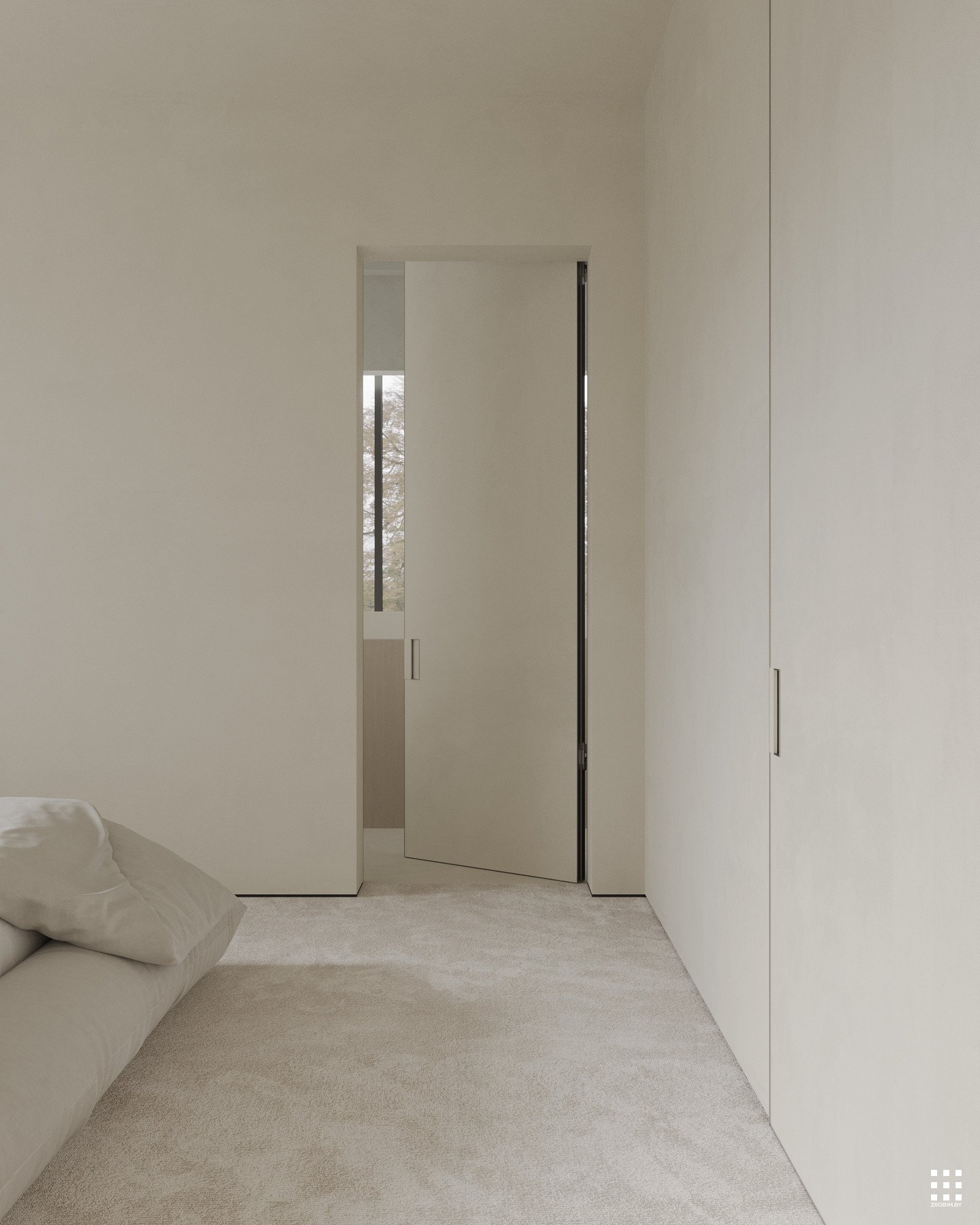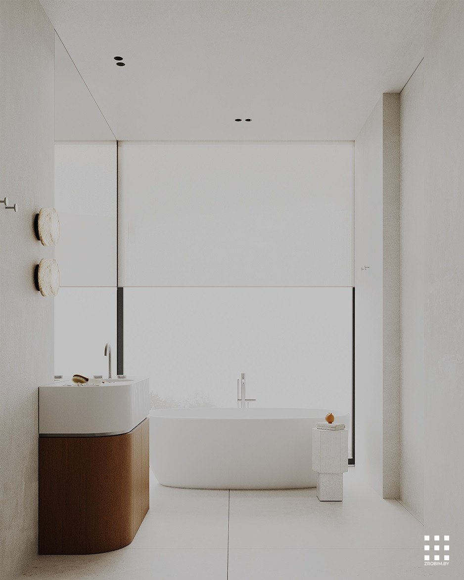 У гэтым праекце архітэктура мякка перацякае ў інтэр'ер, працягваючы сябе ў мінімалізме, цяпле і светла-бэжавой палітры. Для нас было важна стварыць спакойную, але выразную прастору, напоўненую натуральным святлом, з выверанай сістэмай штучнага асвятлення і кропкавымі акцэнтамі.