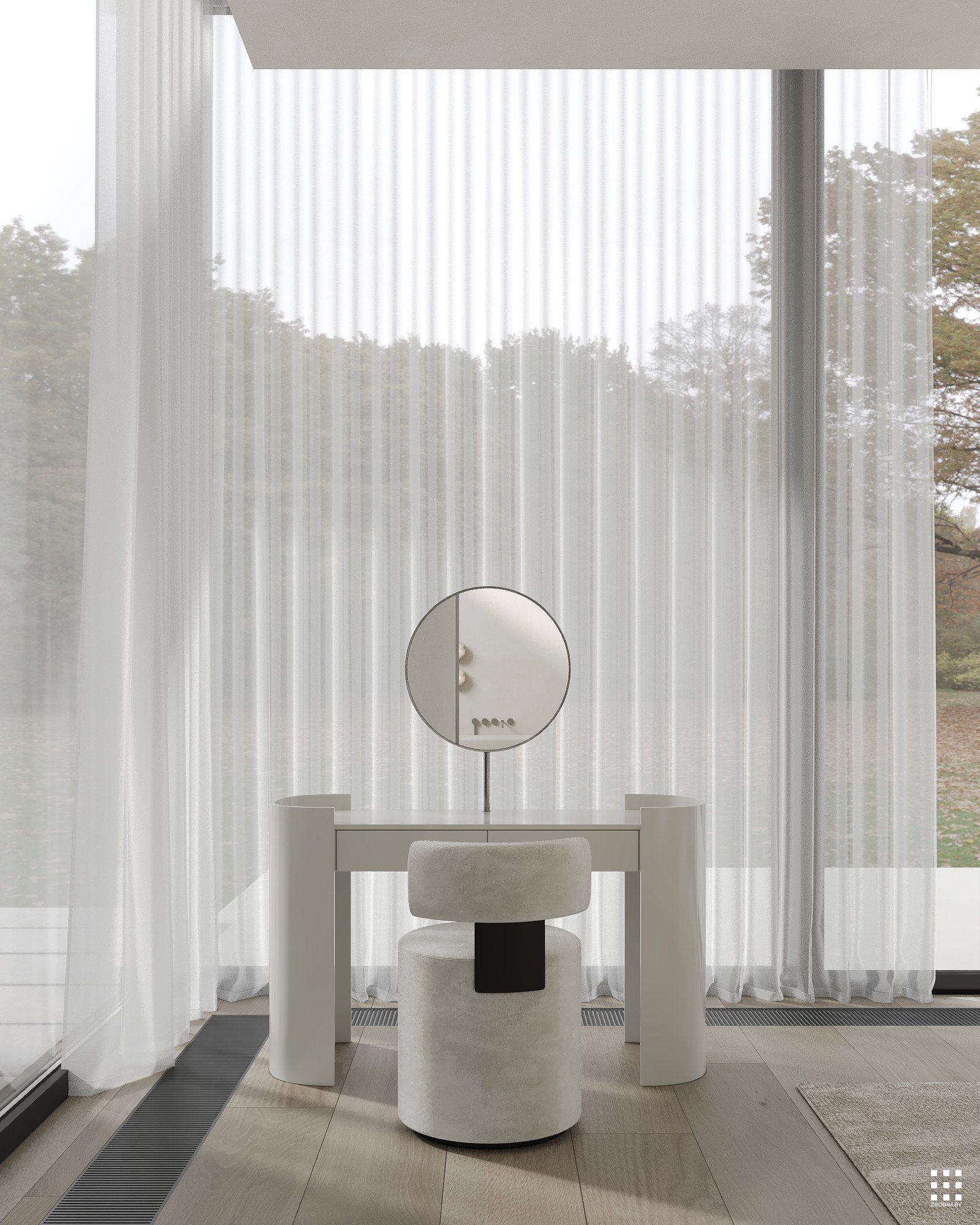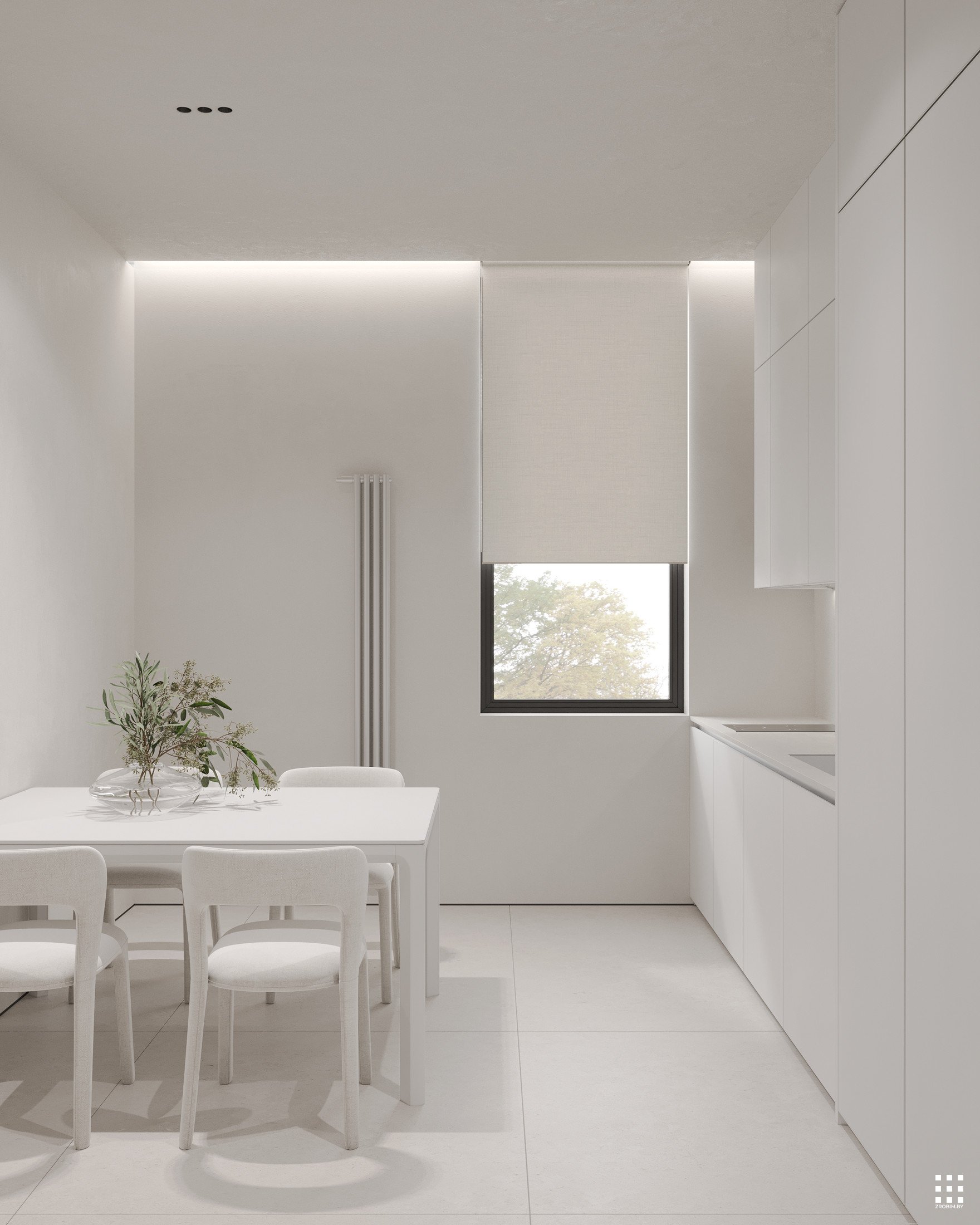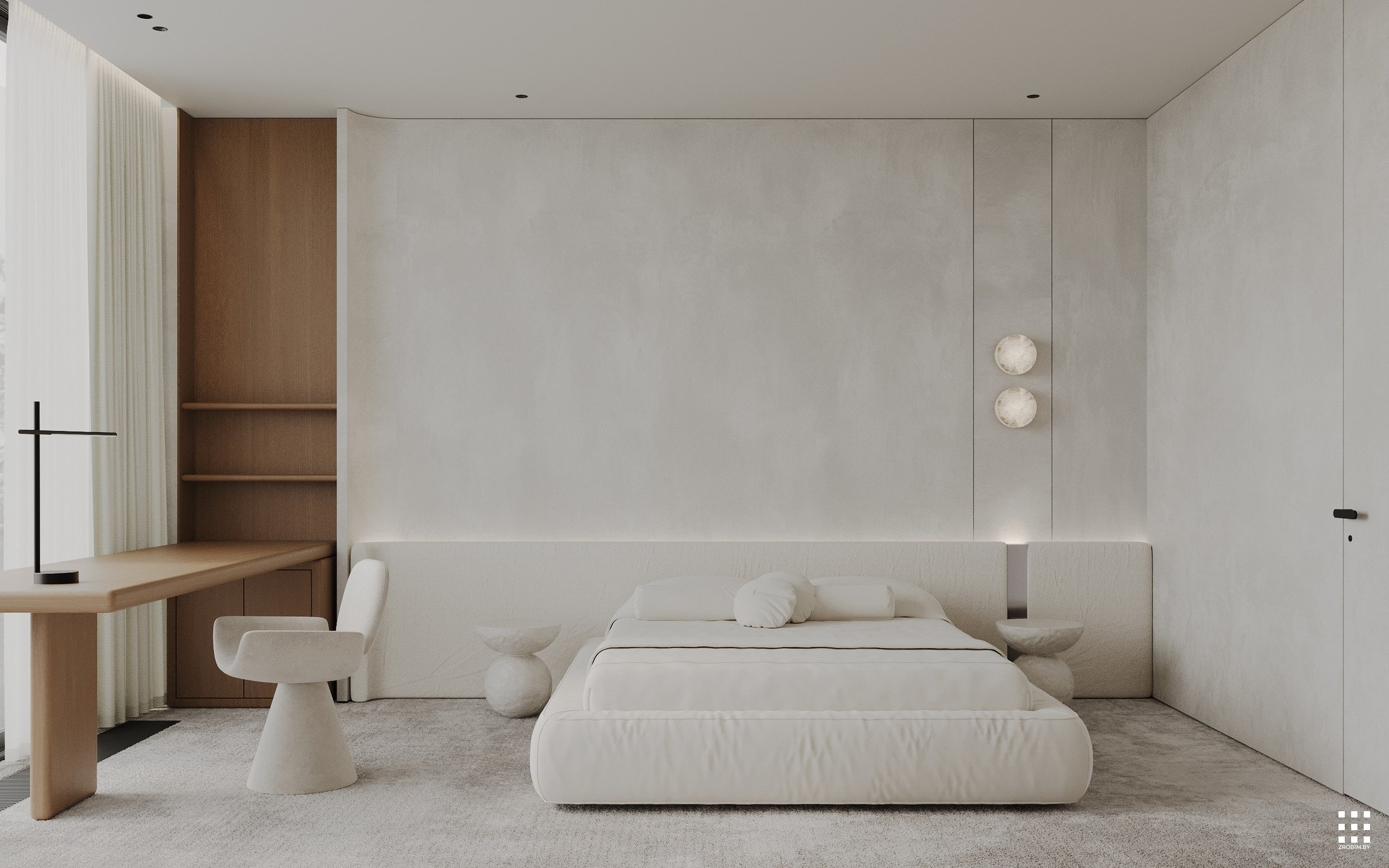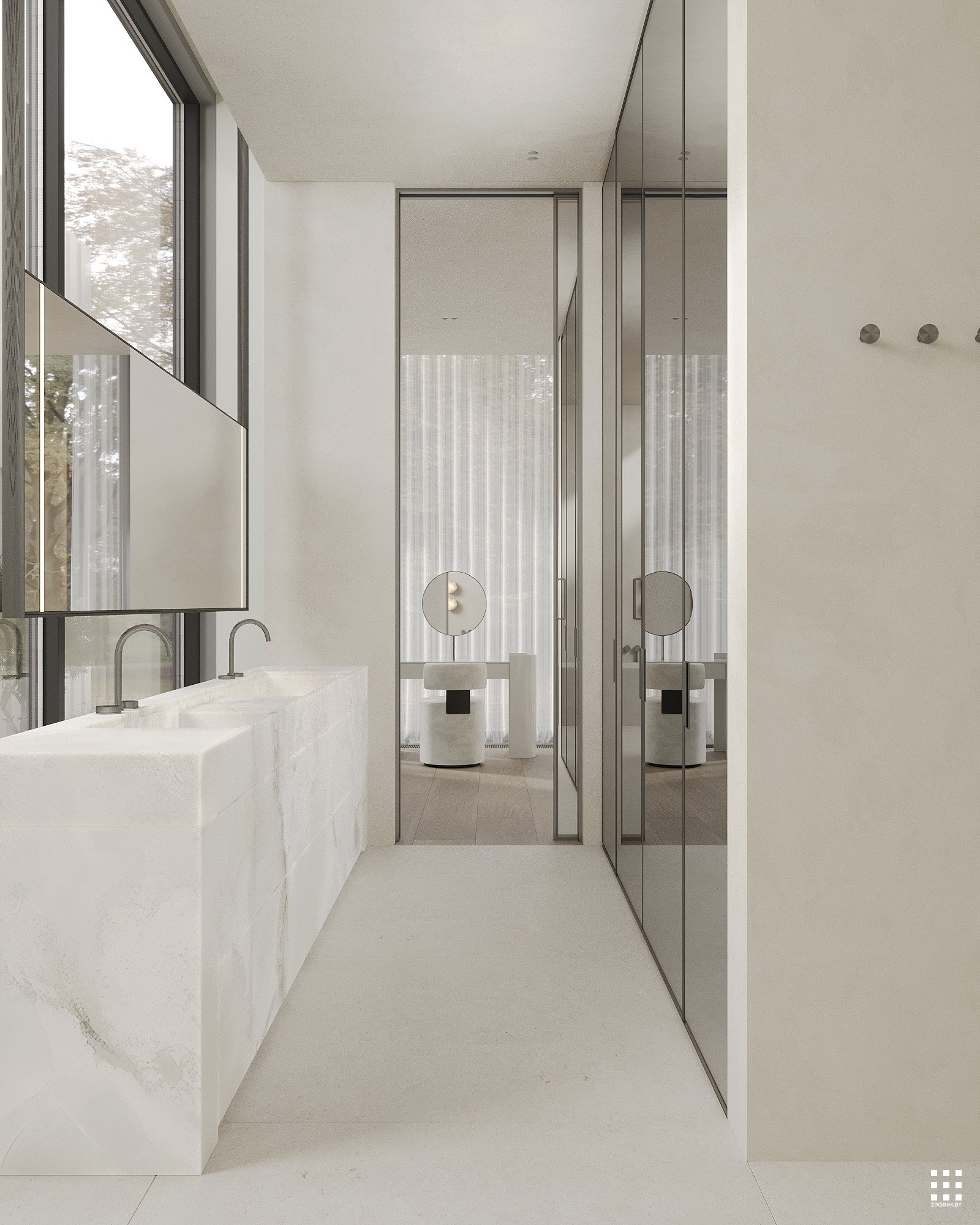 У гэтым праекце архітэктура мякка перацякае ў інтэр'ер, працягваючы сябе ў мінімалізме, цяпле і светла-бэжавой палітры. Для нас было важна стварыць спакойную, але выразную прастору, напоўненую натуральным святлом, з выверанай сістэмай штучнага асвятлення і кропкавымі акцэнтамі.