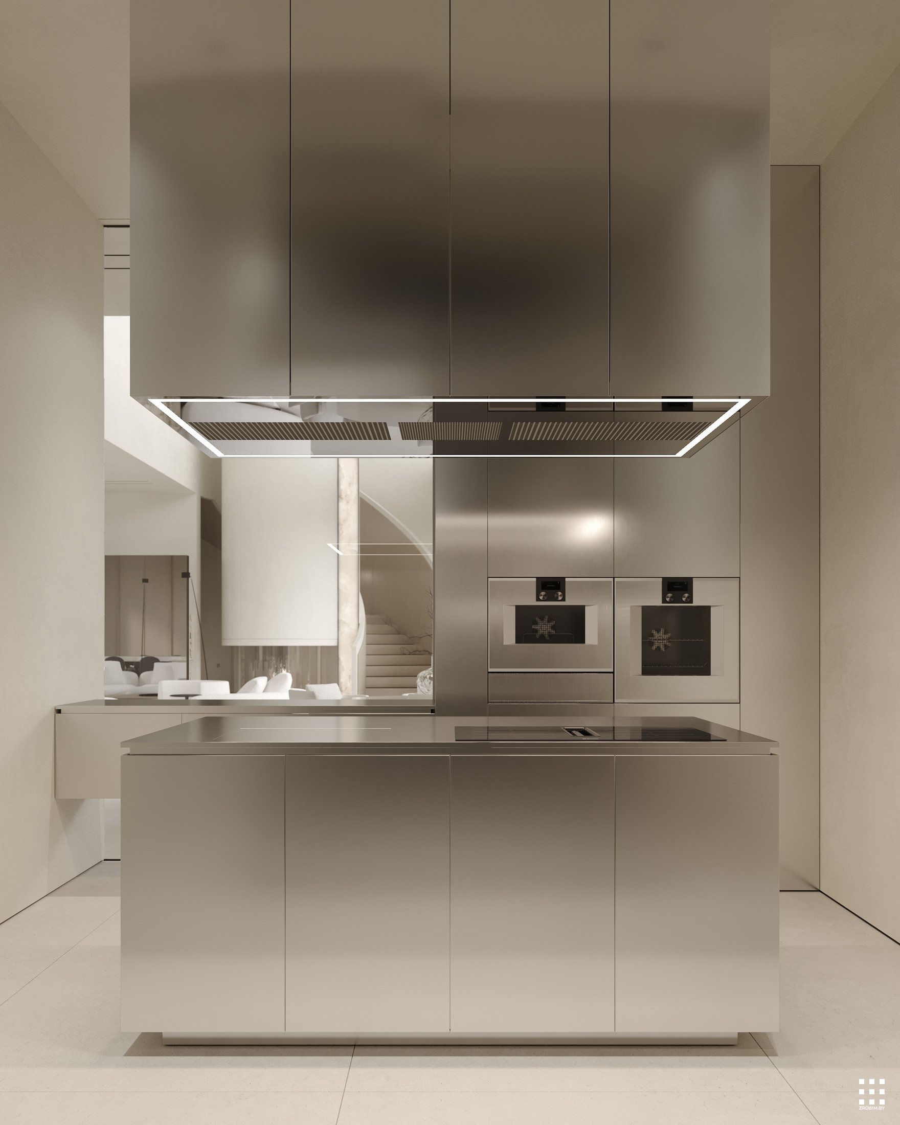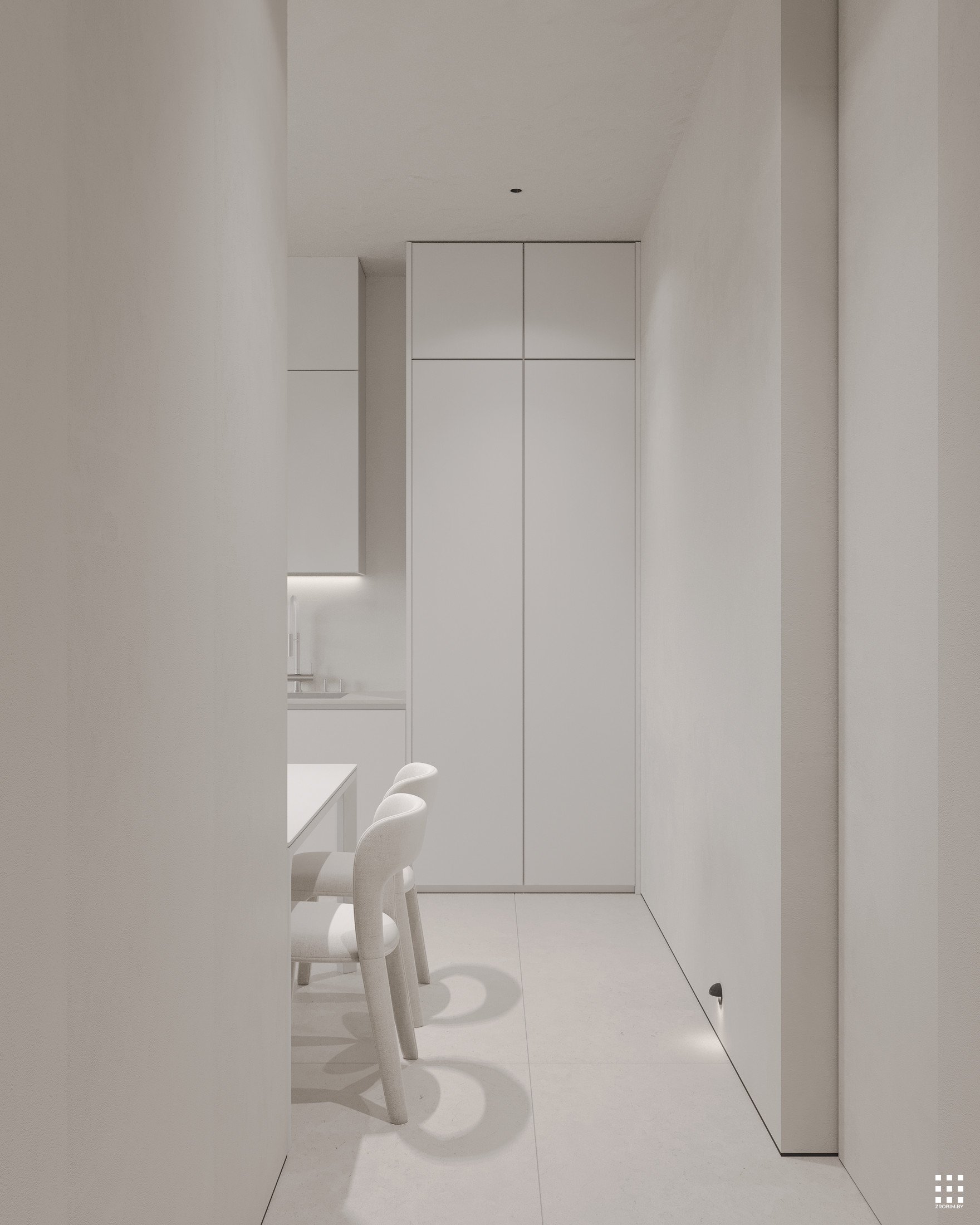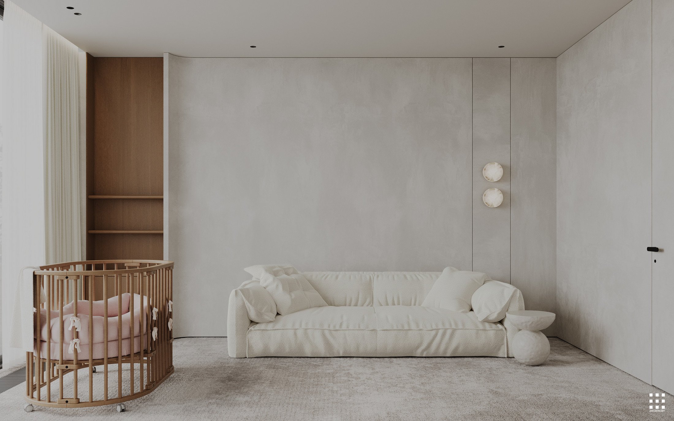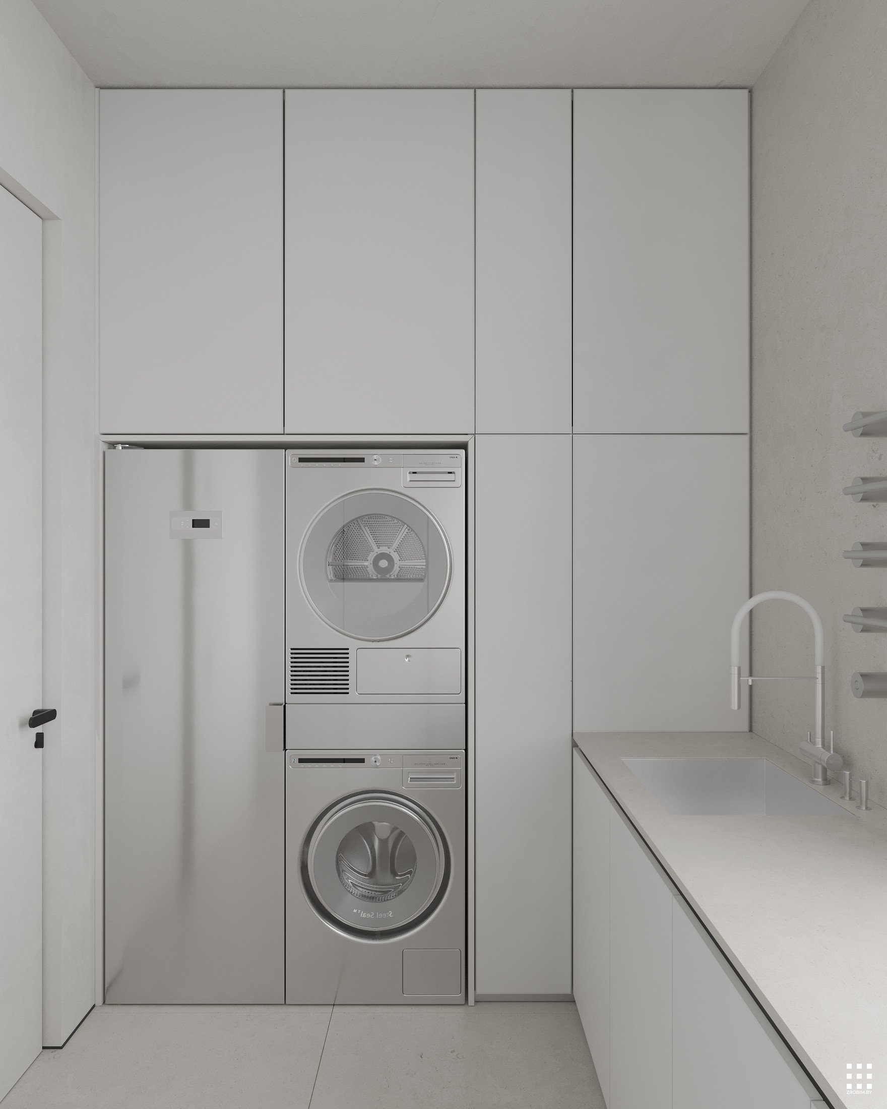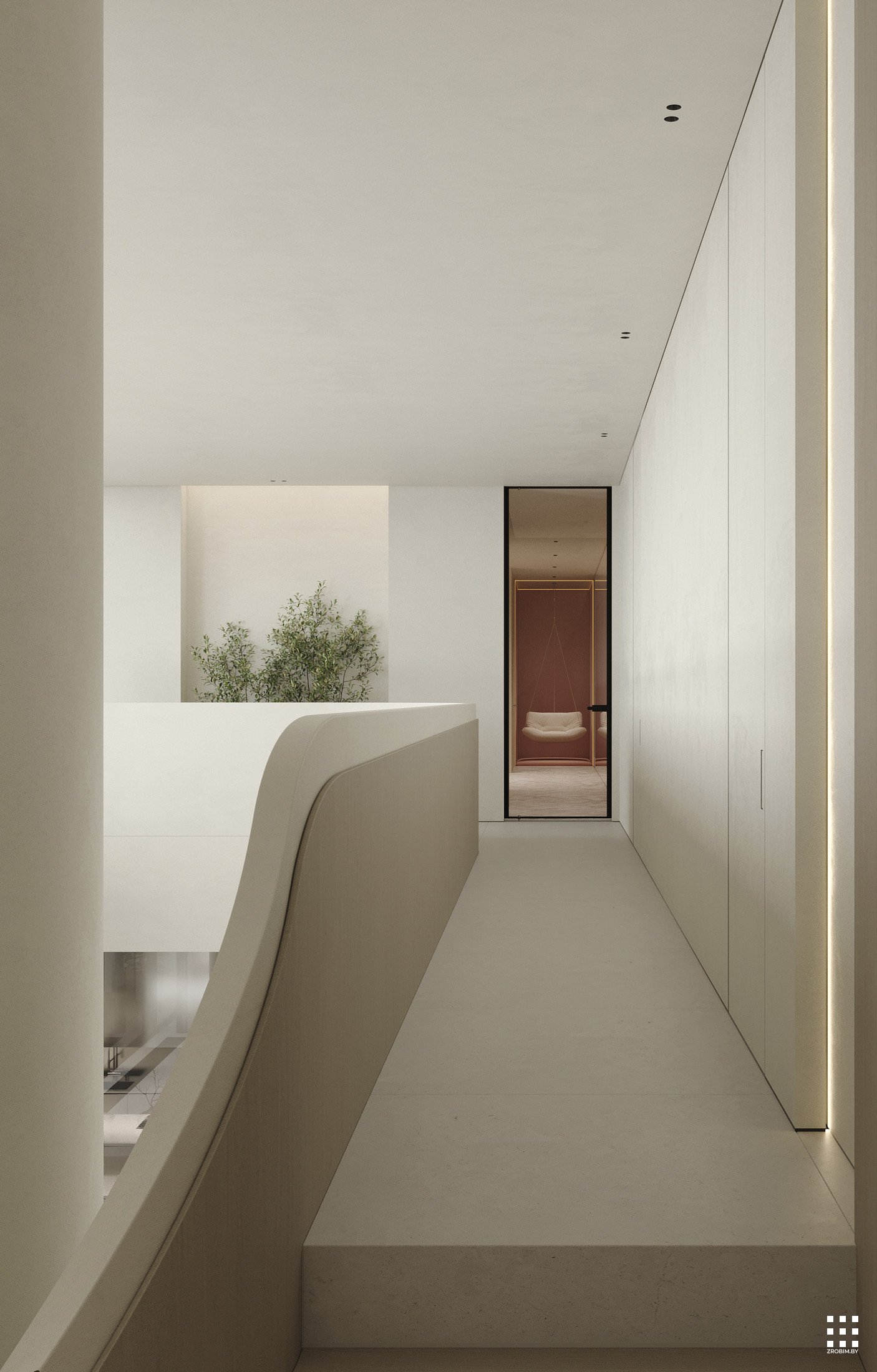 У гэтым праекце архітэктура мякка перацякае ў інтэр'ер, працягваючы сябе ў мінімалізме, цяпле і светла-бэжавой палітры. Для нас было важна стварыць спакойную, але выразную прастору, напоўненую натуральным святлом, з выверанай сістэмай штучнага асвятлення і кропкавымі акцэнтамі.