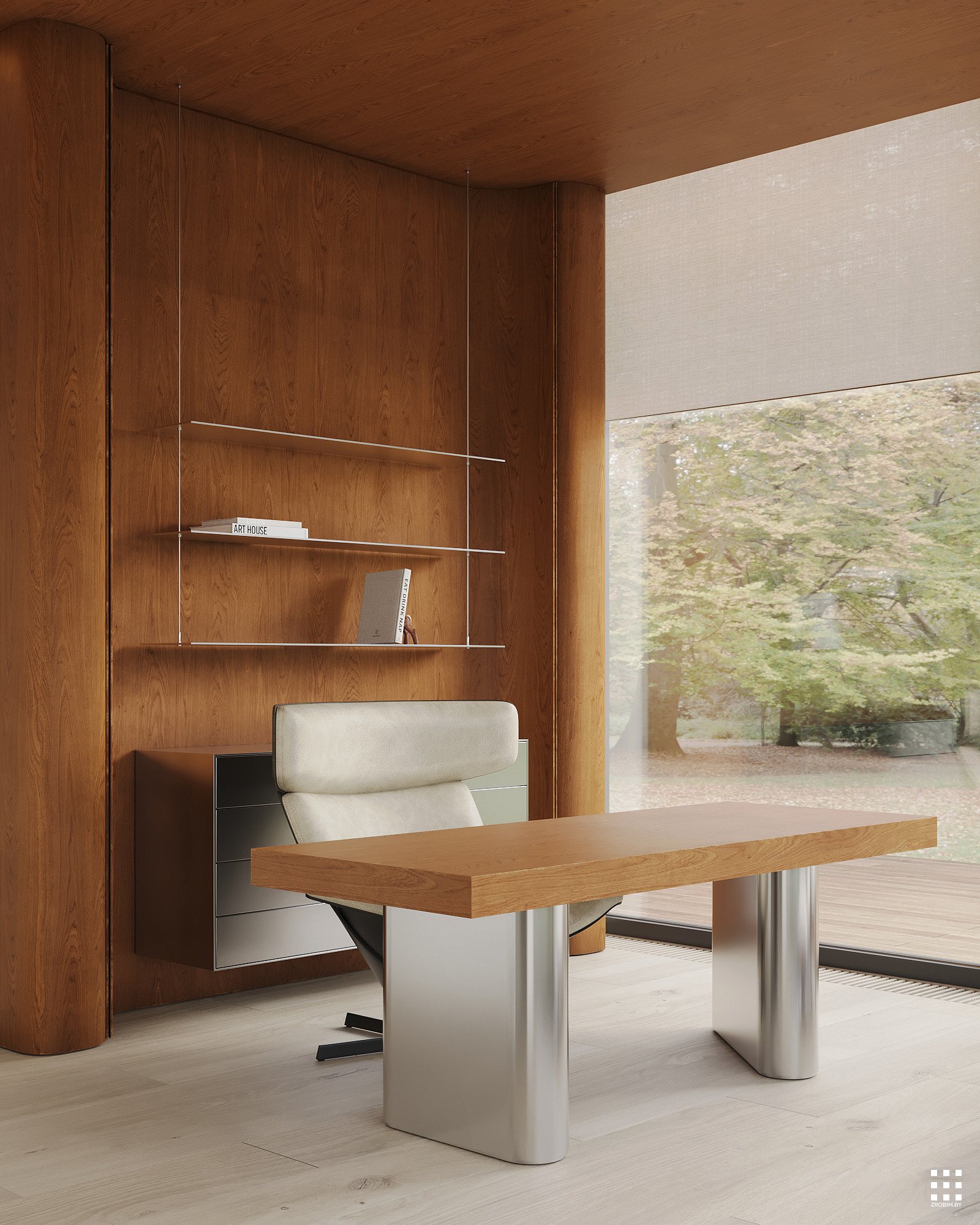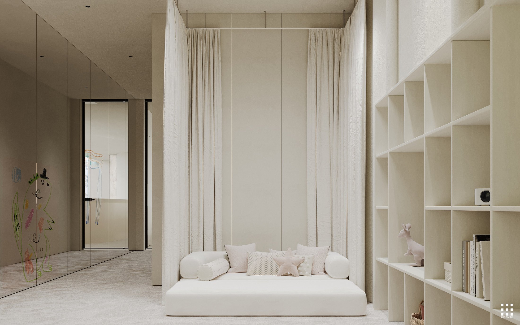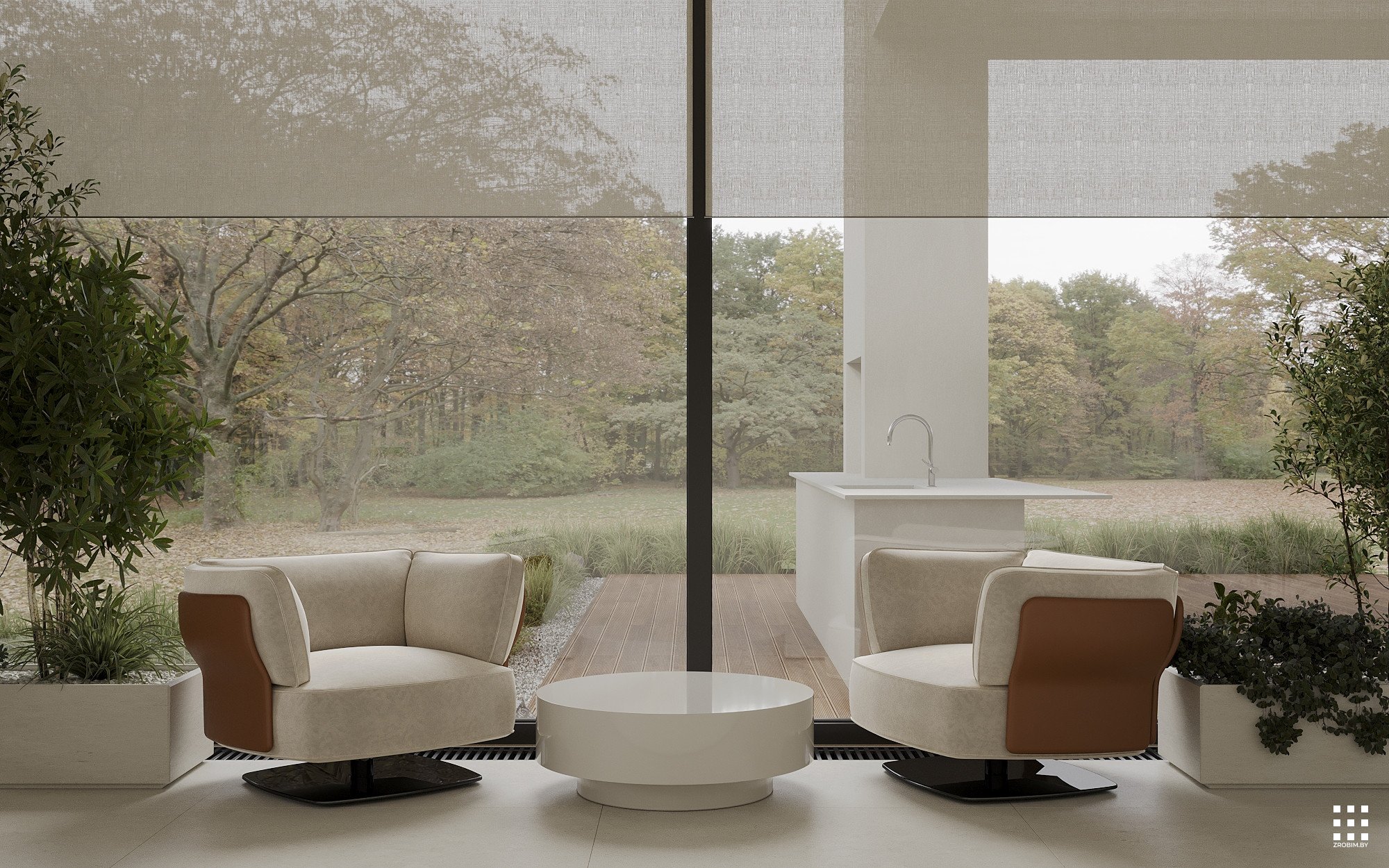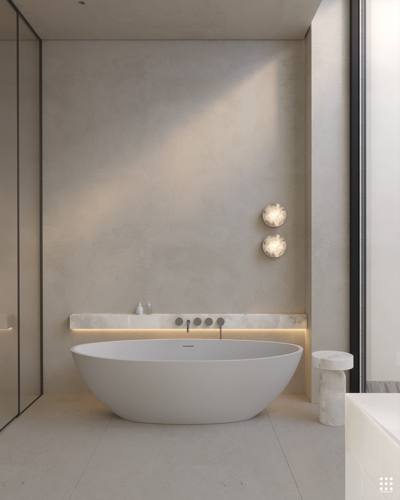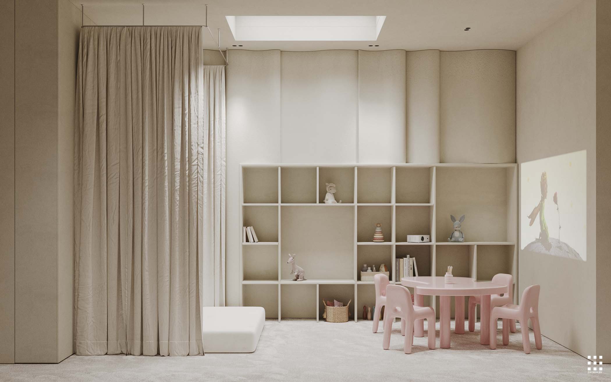 У гэтым праекце архітэктура мякка перацякае ў інтэр'ер, працягваючы сябе ў мінімалізме, цяпле і светла-бэжавой палітры. Для нас было важна стварыць спакойную, але выразную прастору, напоўненую натуральным святлом, з выверанай сістэмай штучнага асвятлення і кропкавымі акцэнтамі.