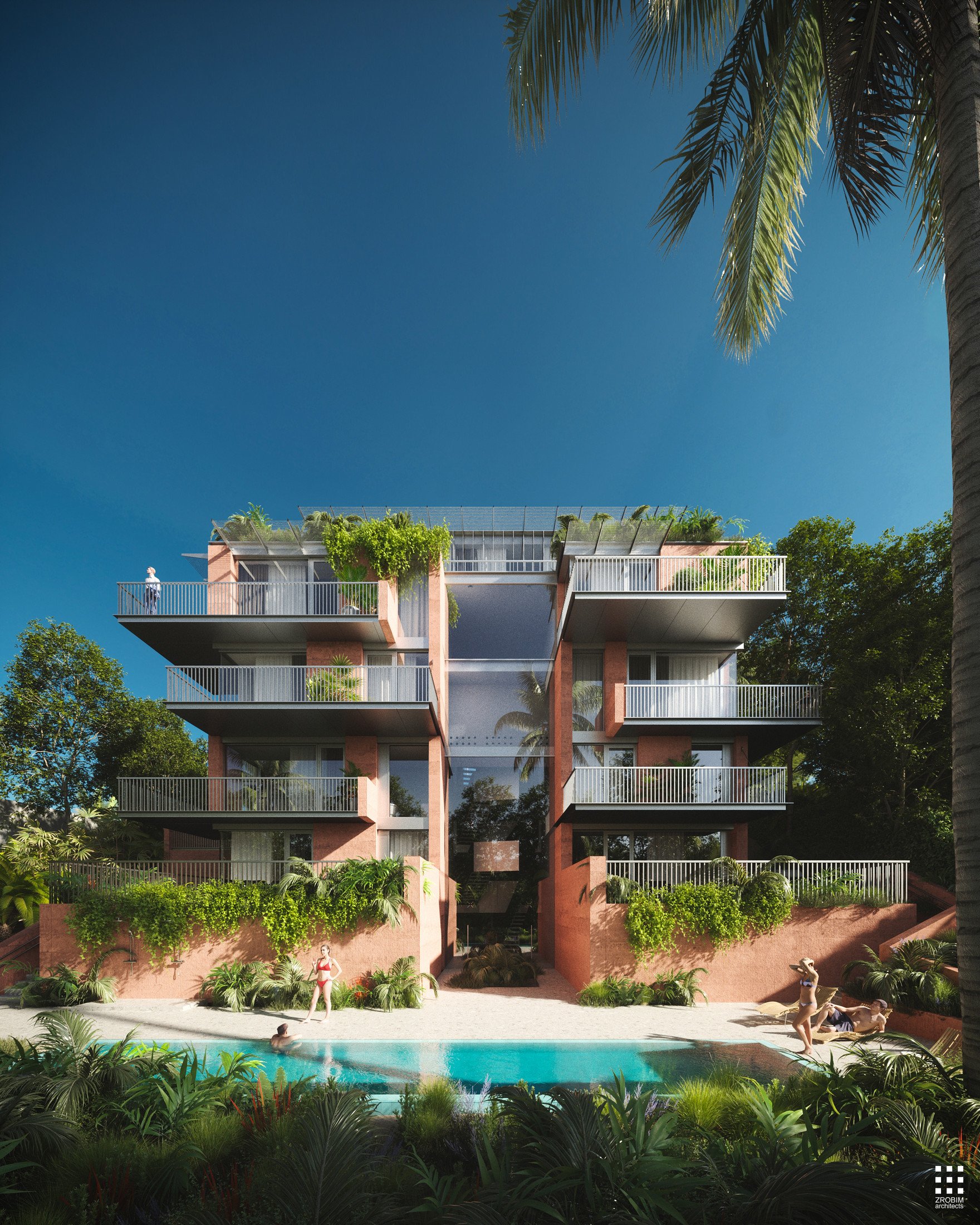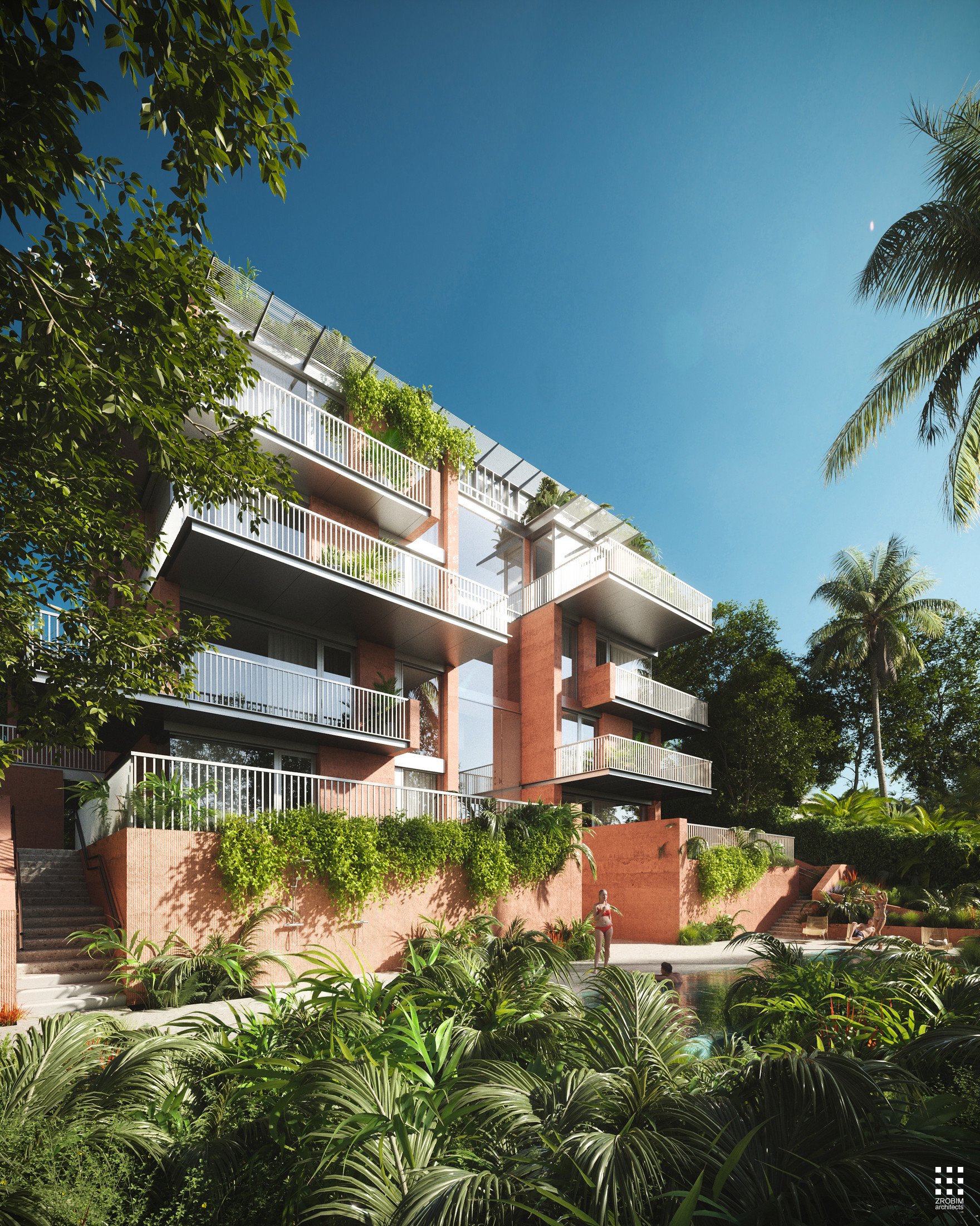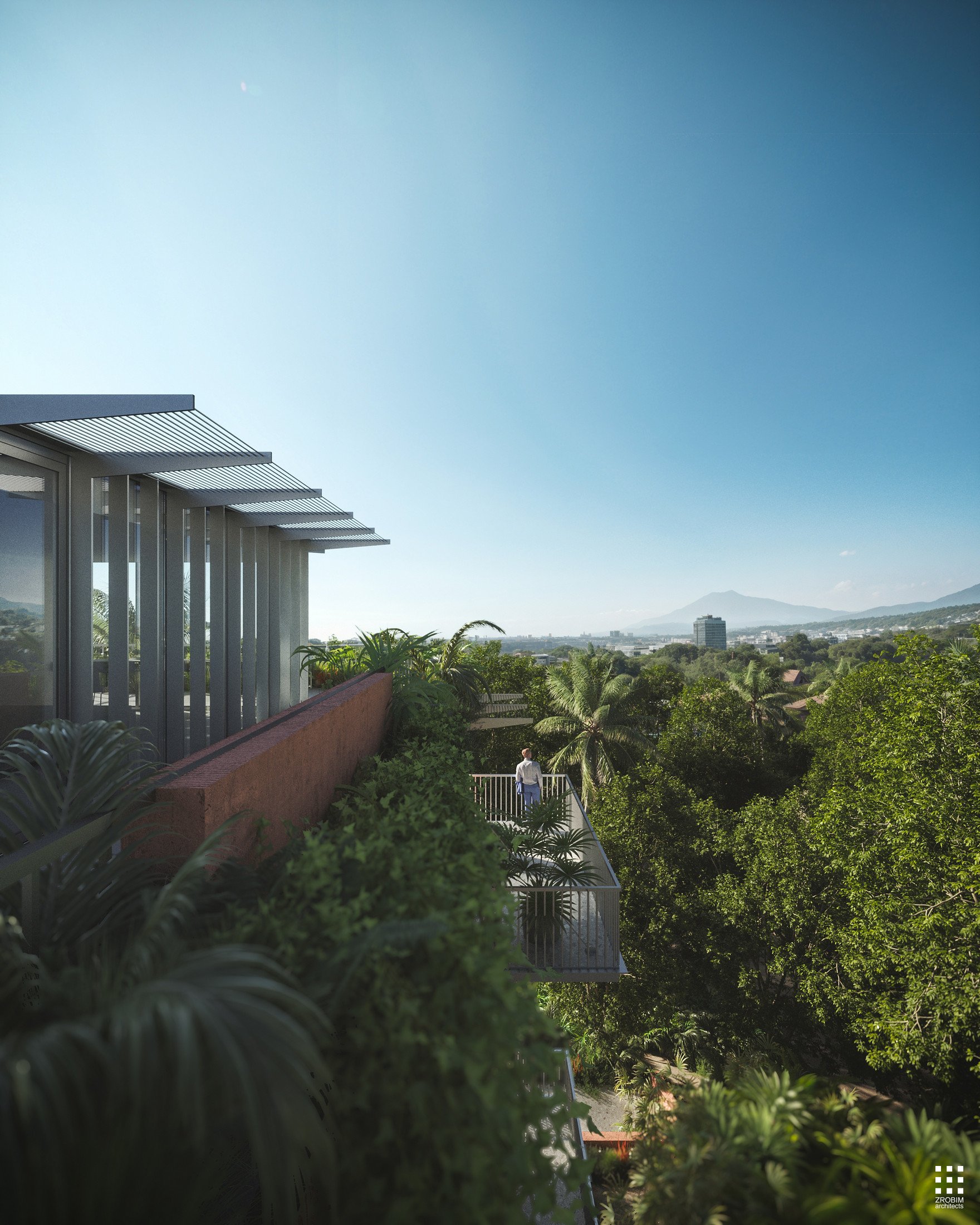 Green accents on rooftops and terraces create the ощущение private gardens and strengthen the connection with nature, positioning the project as a refined example of contemporary premium architecture — where every detail is carefully considered, and comfort and aesthetics are seamlessly integrated.