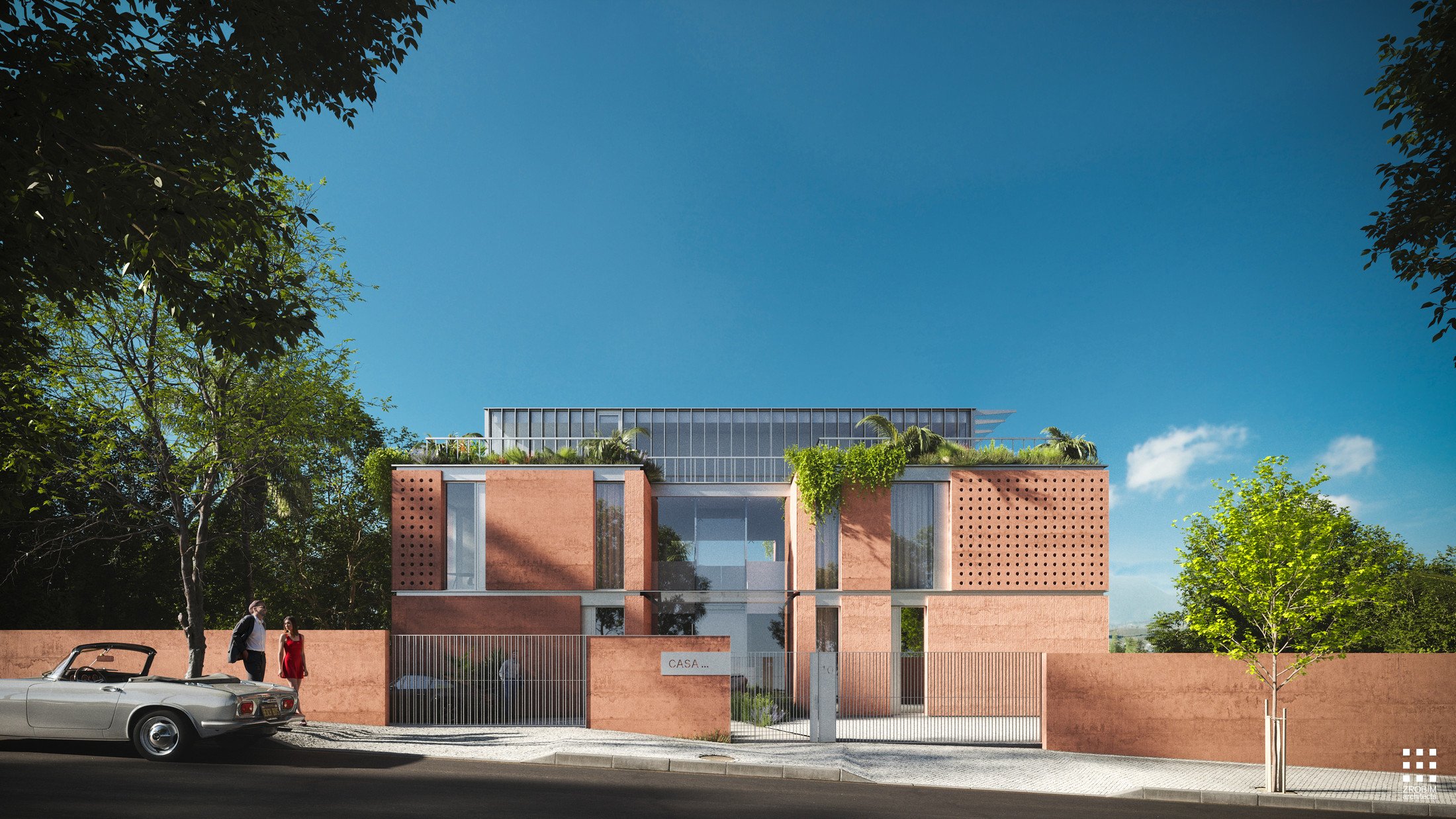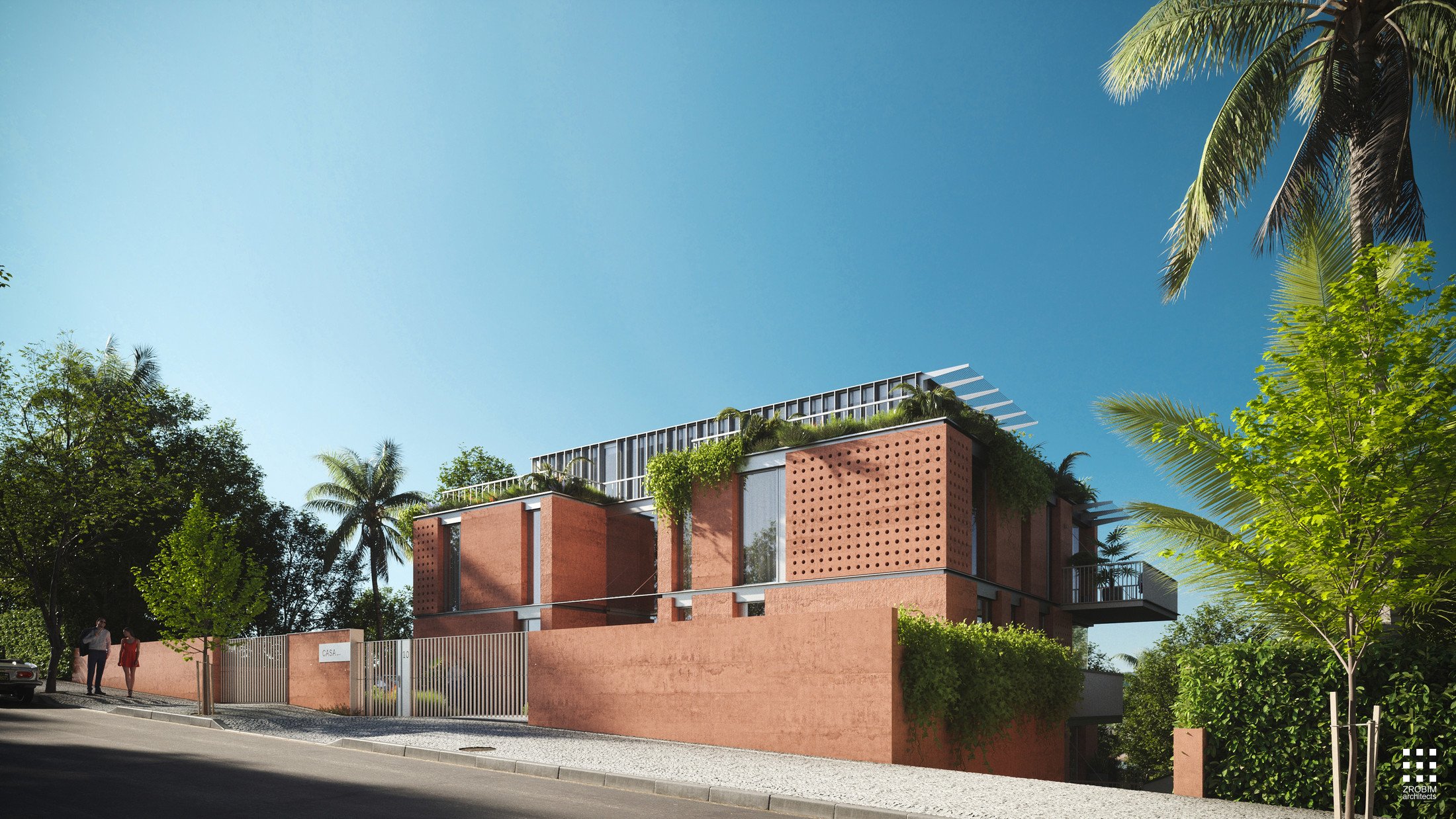 The façades combine warm materials with decorative cellular concrete, used as a contemporary screen that introduces rhythm and character. These elements make the building distinctive and expressive, emphasizing its southern spirit.