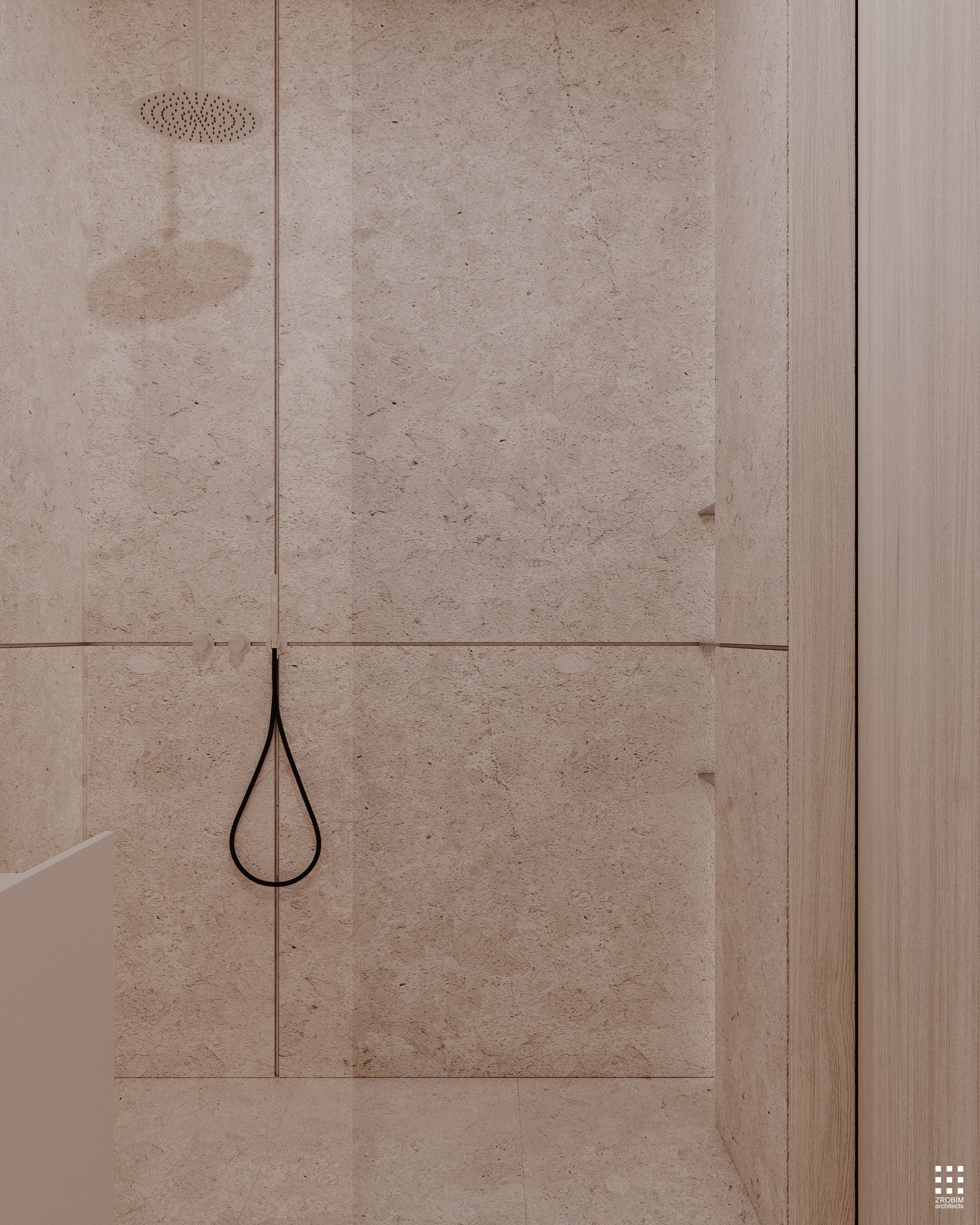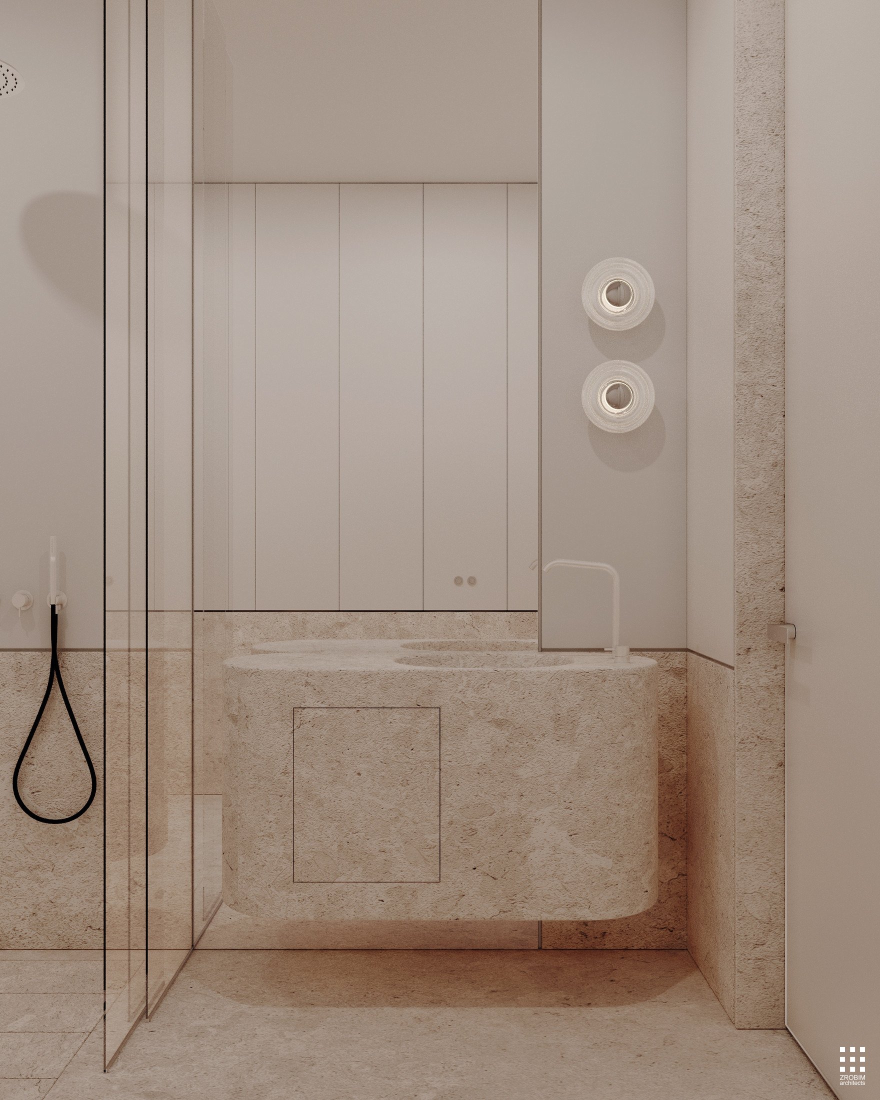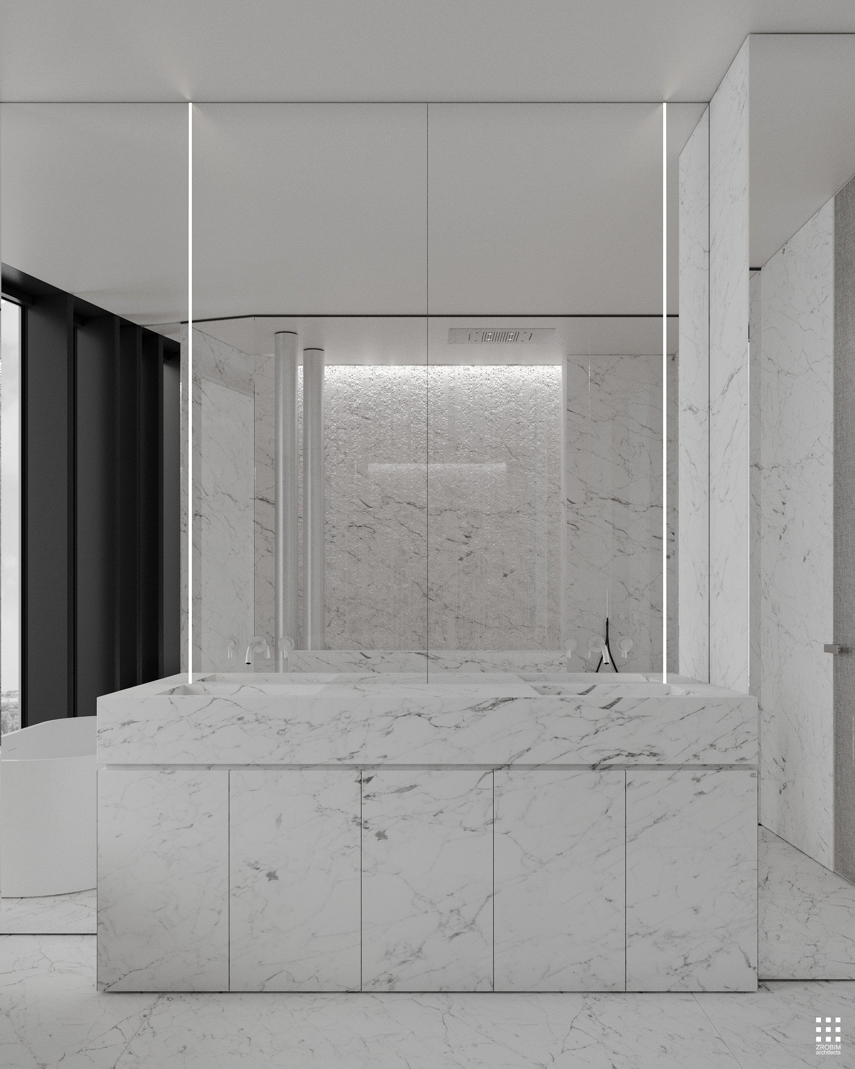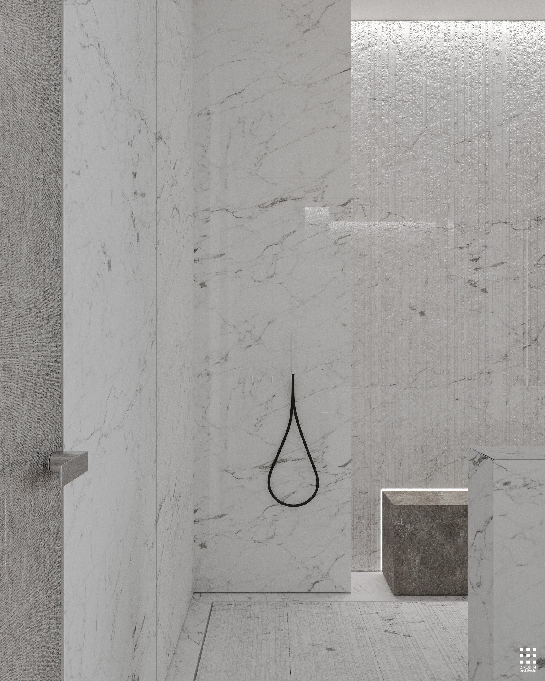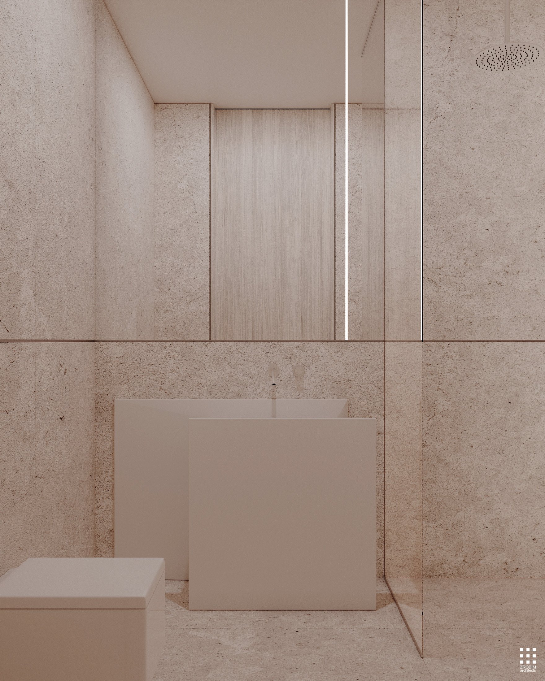Despite the expressive volume, the project remains extremely minimalist — as minimalist as possible for a living space with a rich lifestyle. We deliberately eliminated all unnecessary elements, leaving only pure geometry, precise proportions, and thoughtful axes. Here, every line, every node, and every material transition are carefully crafted.