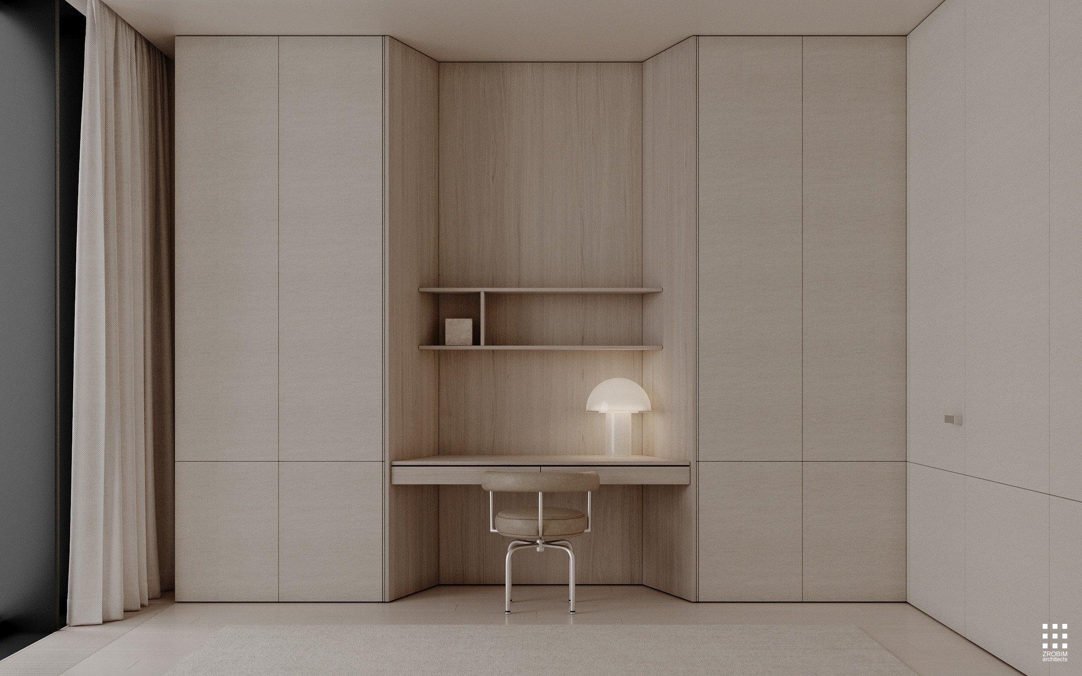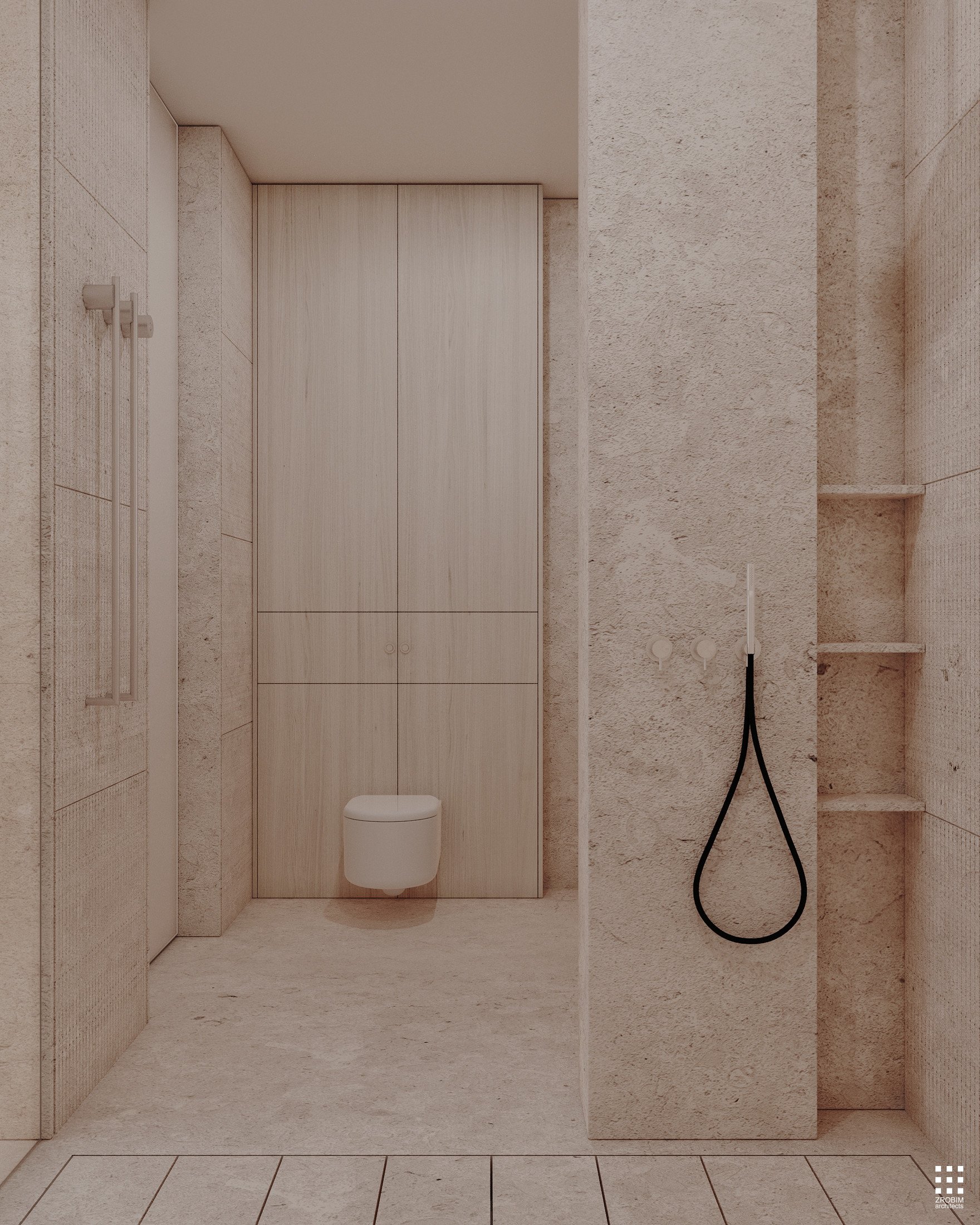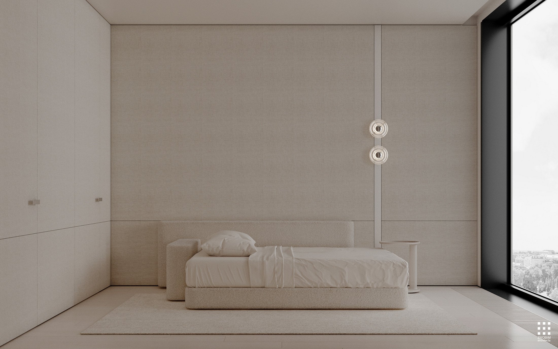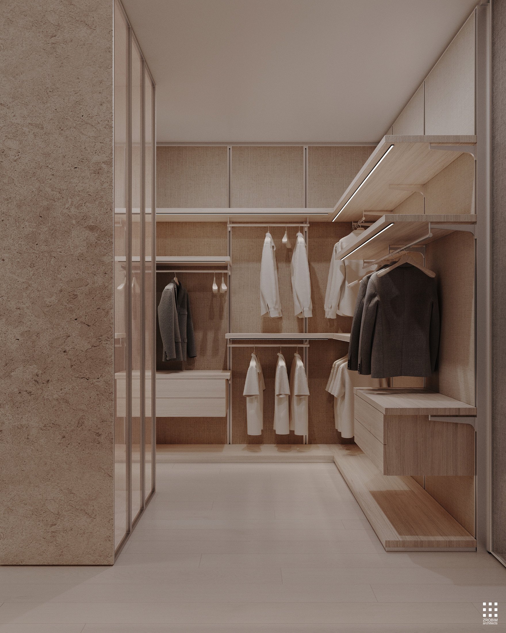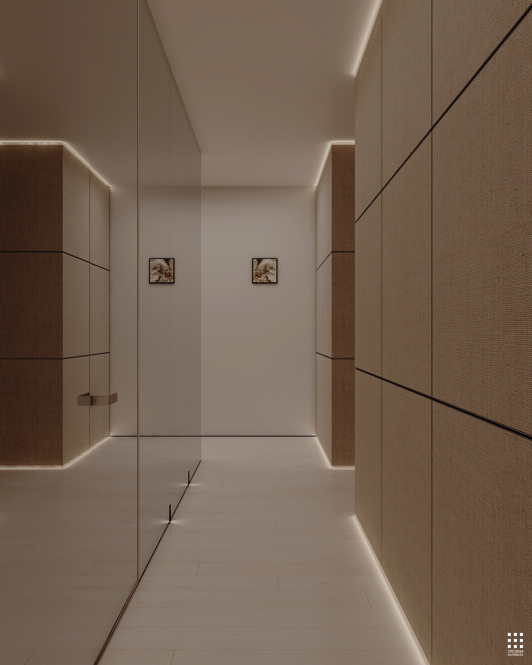 Despite the expressive volume, the project remains extremely minimalist — as minimalist as possible for a living space with a rich lifestyle. We deliberately eliminated all unnecessary elements, leaving only pure geometry, precise proportions, and thoughtful axes. Here, every line, every node, and every material transition are carefully crafted.
