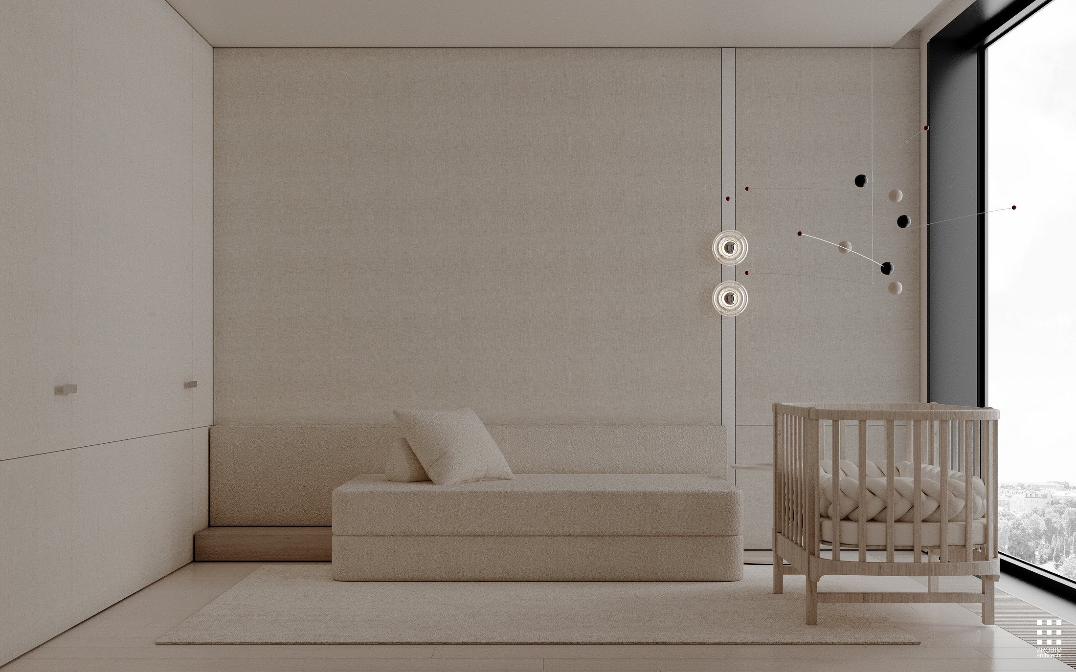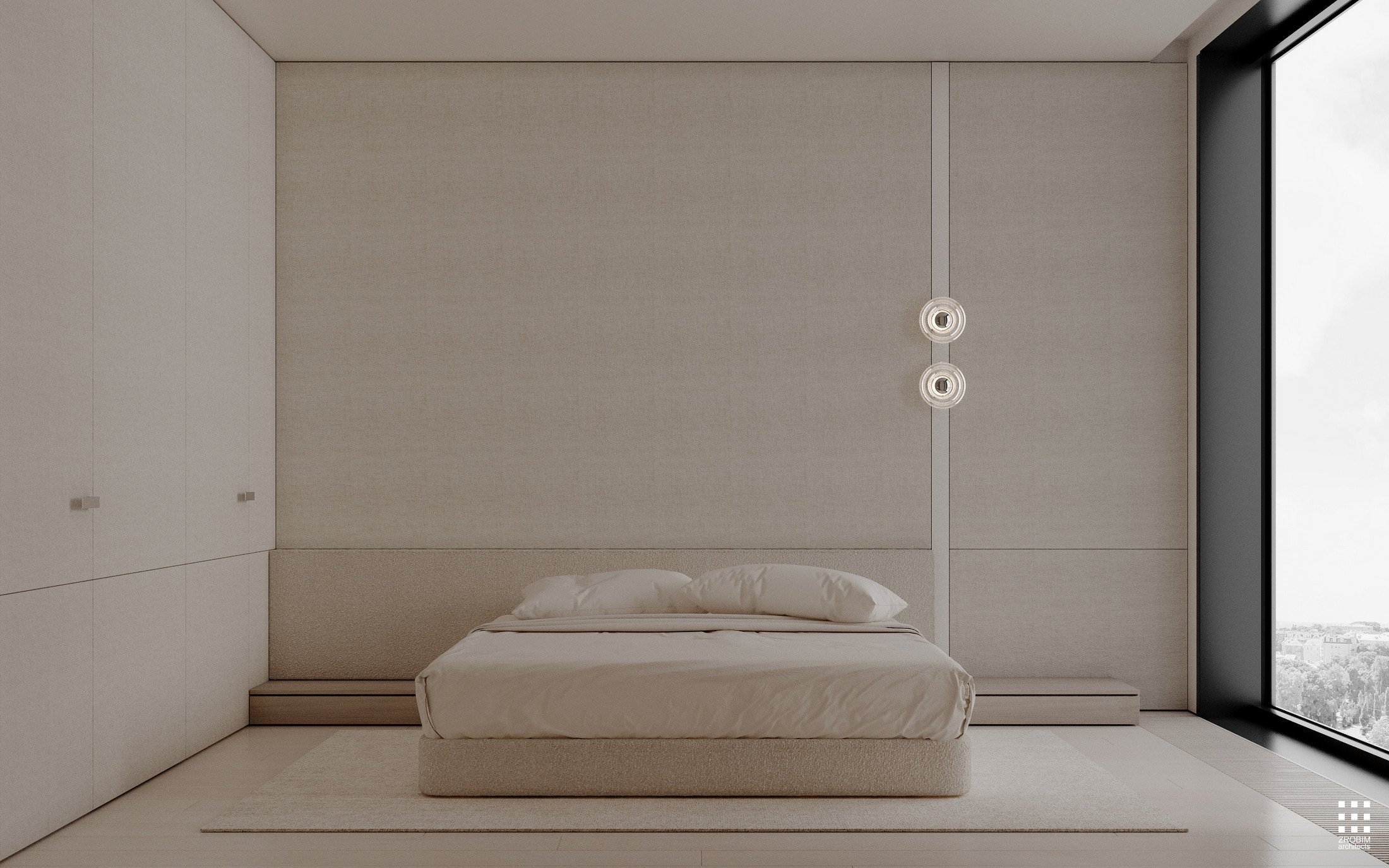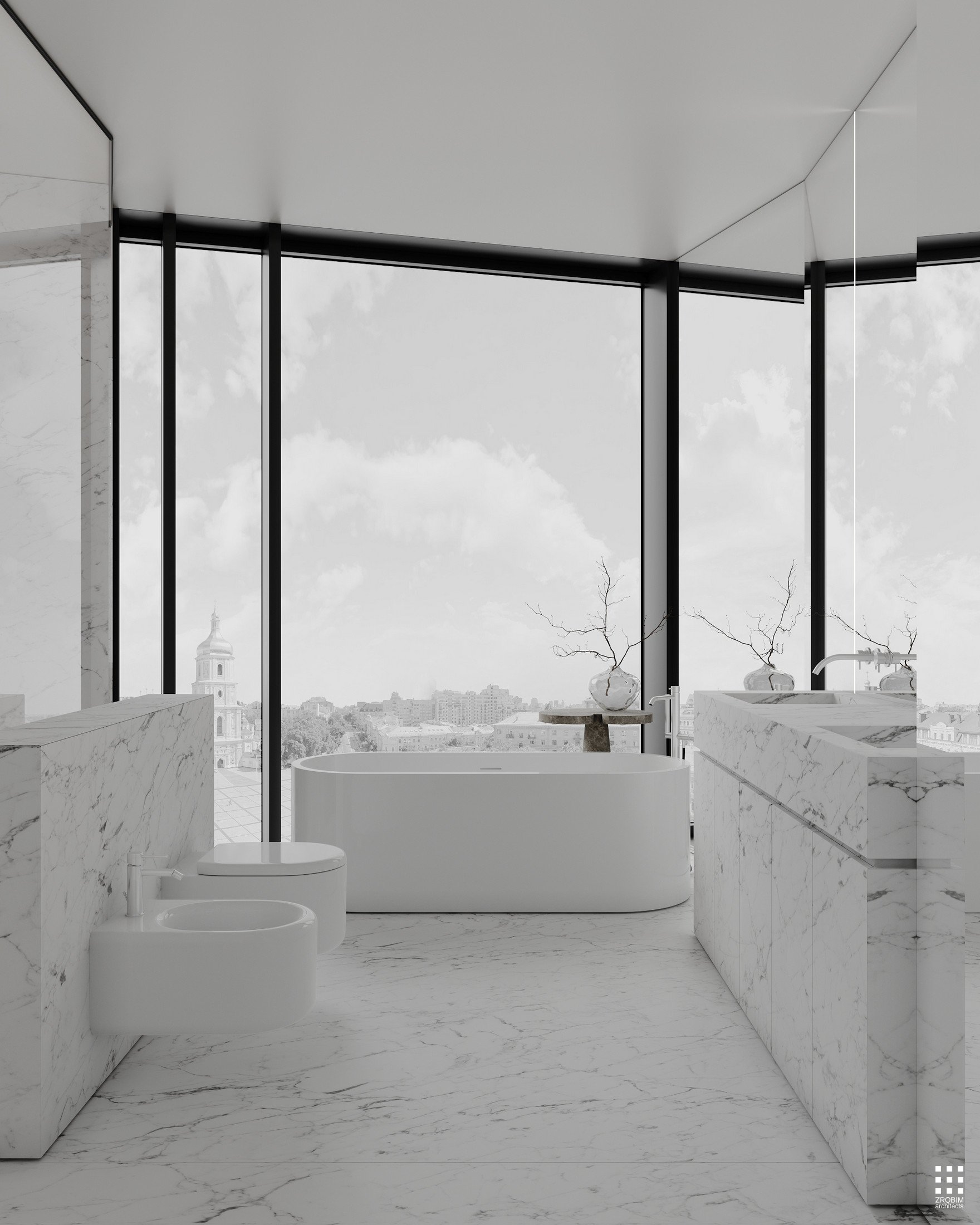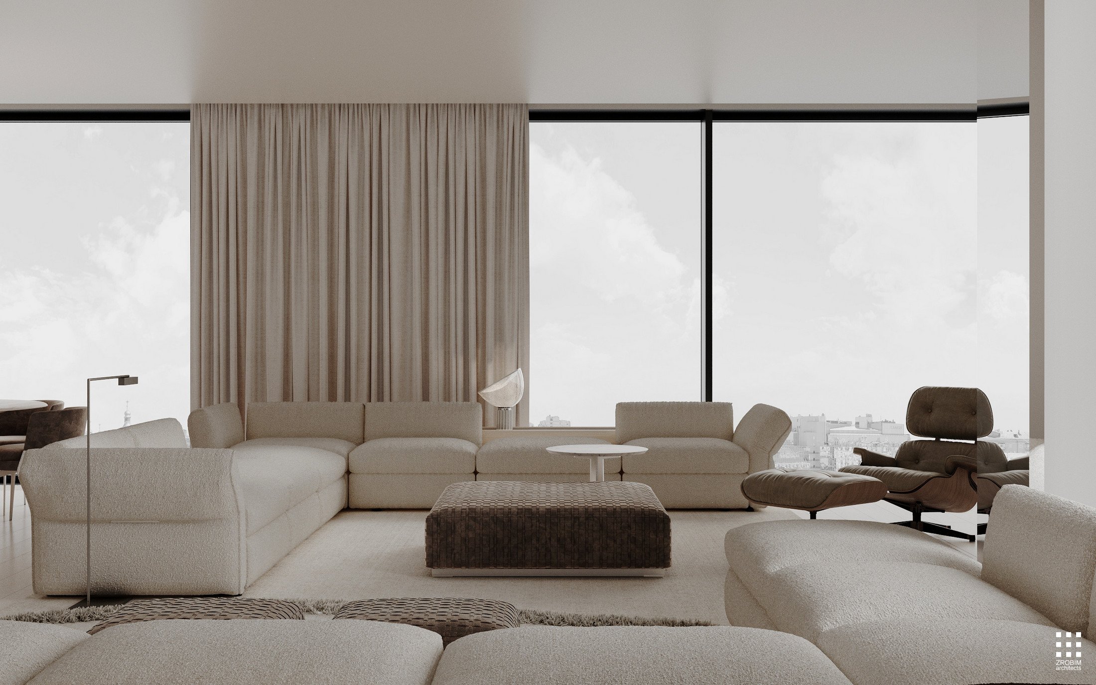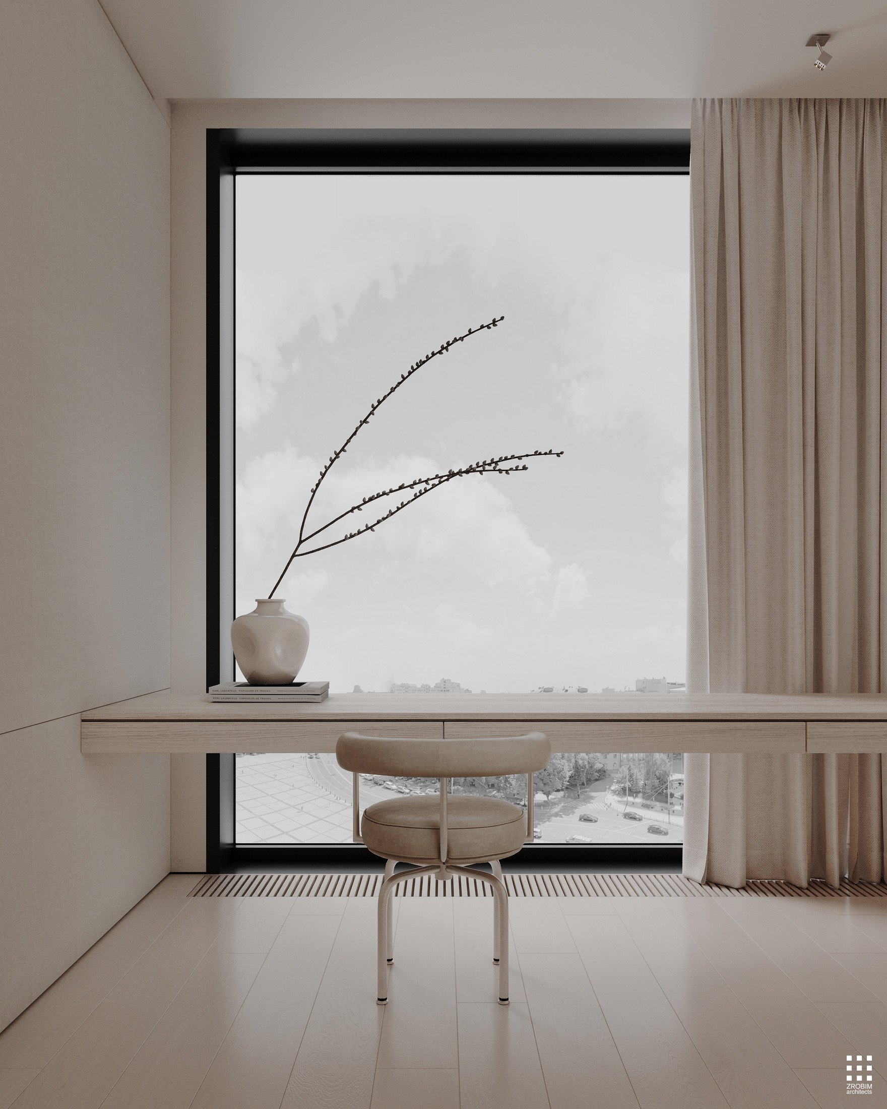 Try to imagine a Manhattan apartment with fully panoramic glazing — light stretching to the horizon, the city becoming part of the interior, a sense of height, air, and scale. This is precisely the mood that inspired us when creating this space: openness, graphic design, and honest architecture without unnecessary decoration.