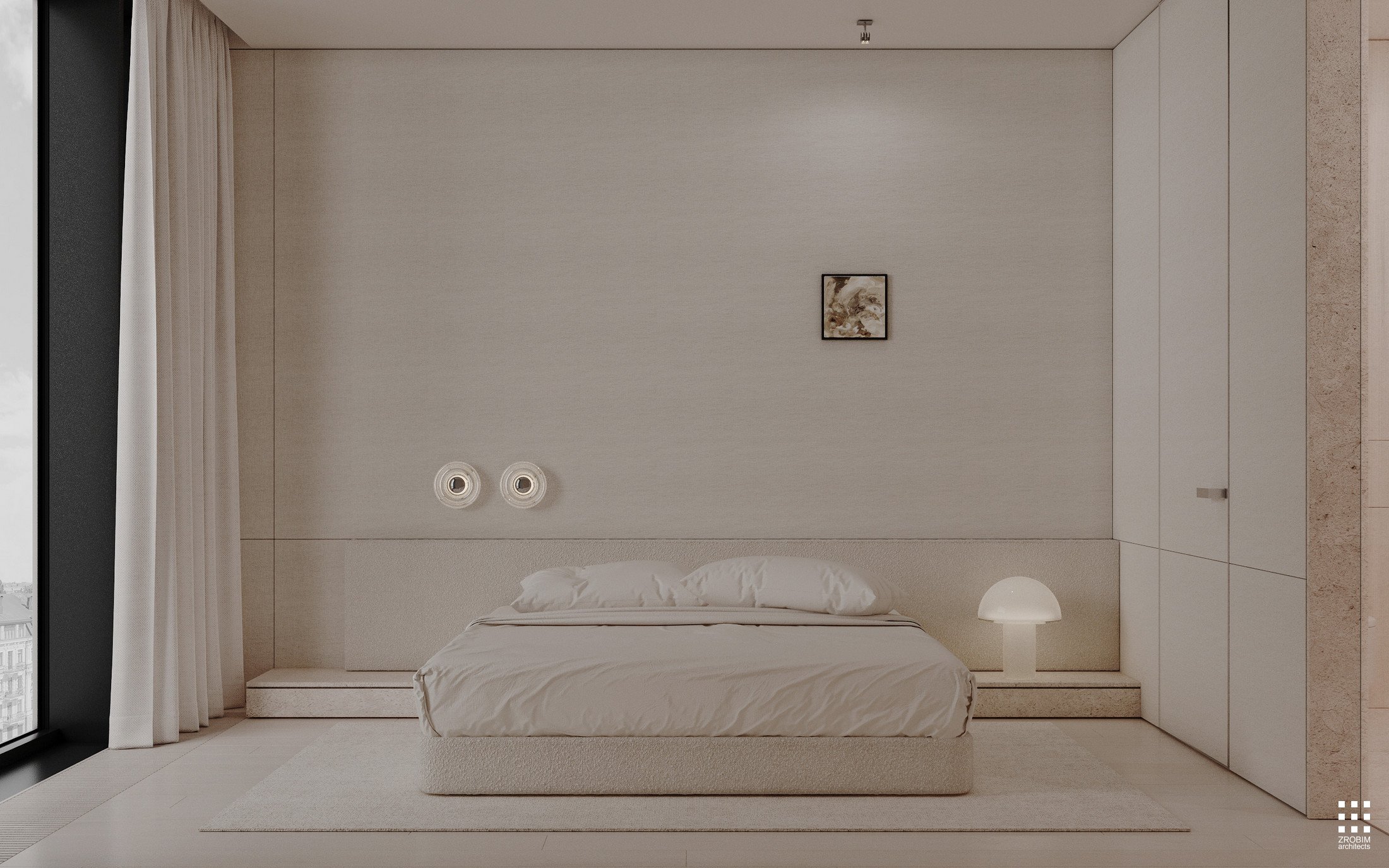 This interior is about balance: between the rhythm of the city and privacy, between minimalism and art, between cold architectural austerity and vibrant, warm textures. A space that appears restrained but feels profound.