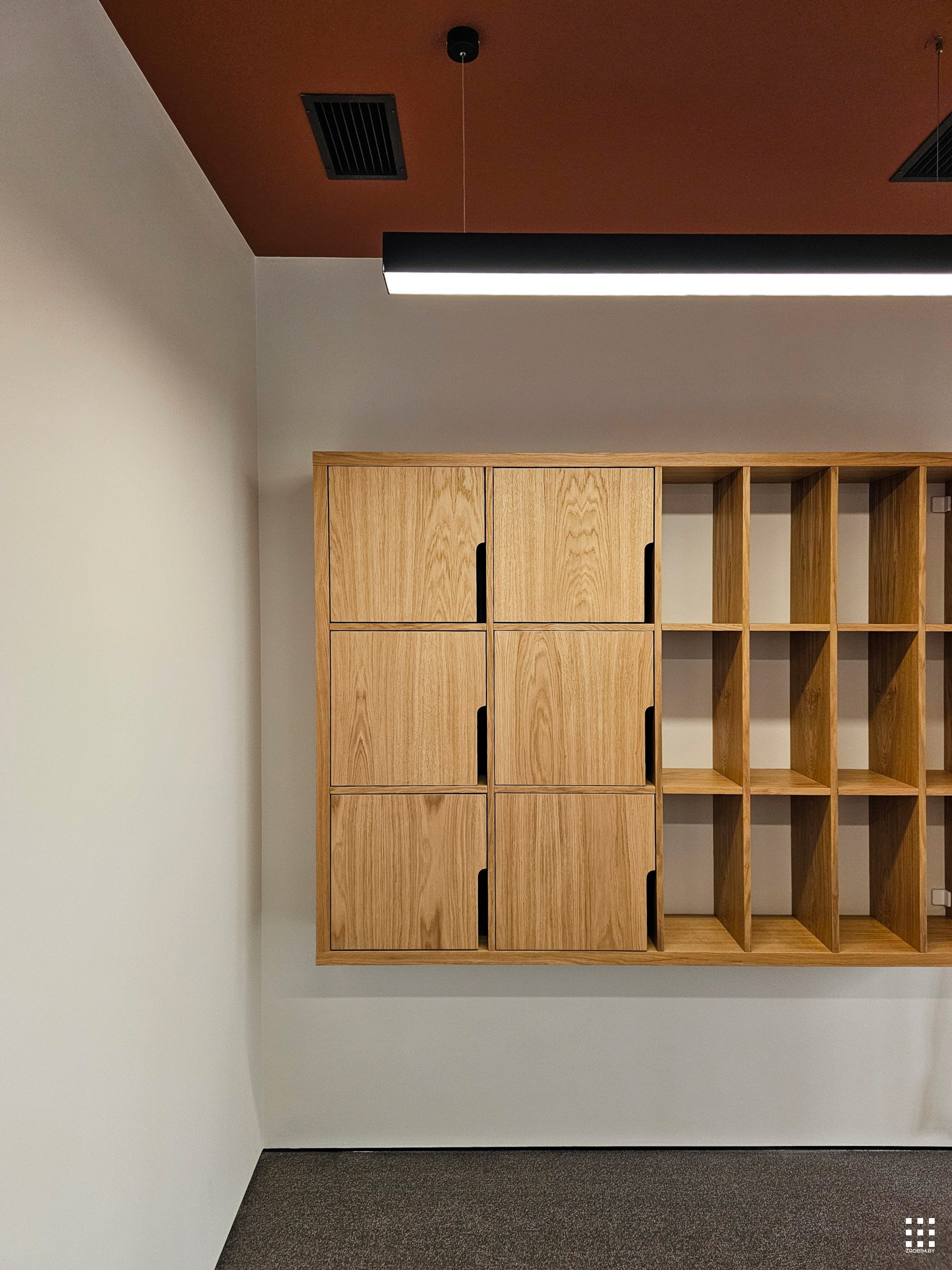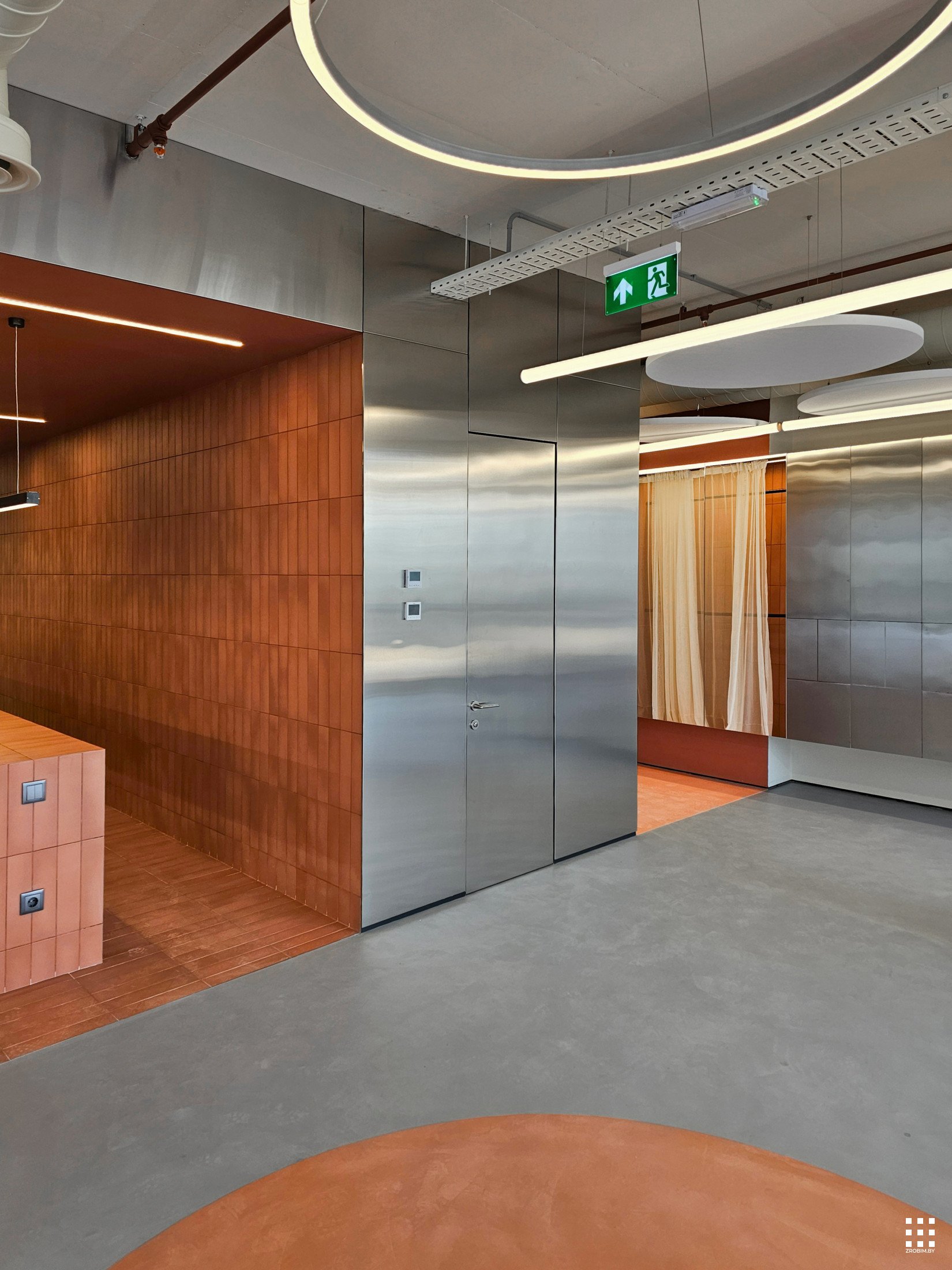 Мы объединили 2 открытых пространства в одно и оставили возможность разделения на зоны с помощью сдвижных перегородок. В основу легли светлые оттенки в отделке и мебели, с которыми локально контрастируют яркие терракотовые зоны и вставки металла. В результате у нас получилось уютное современное офисное пространство, в котором мы оставили возможность привнести характер и айдентику будущего арендатора.