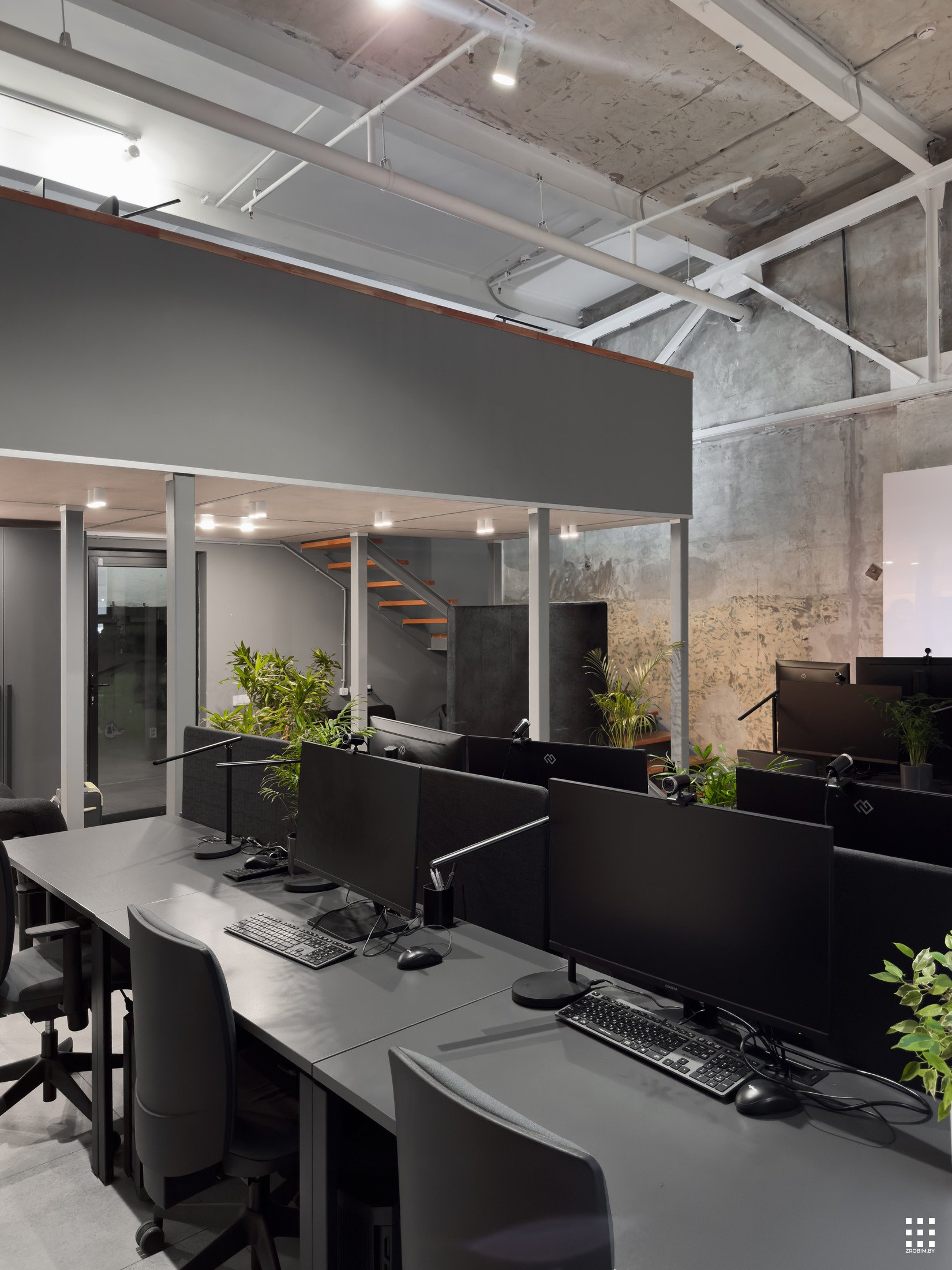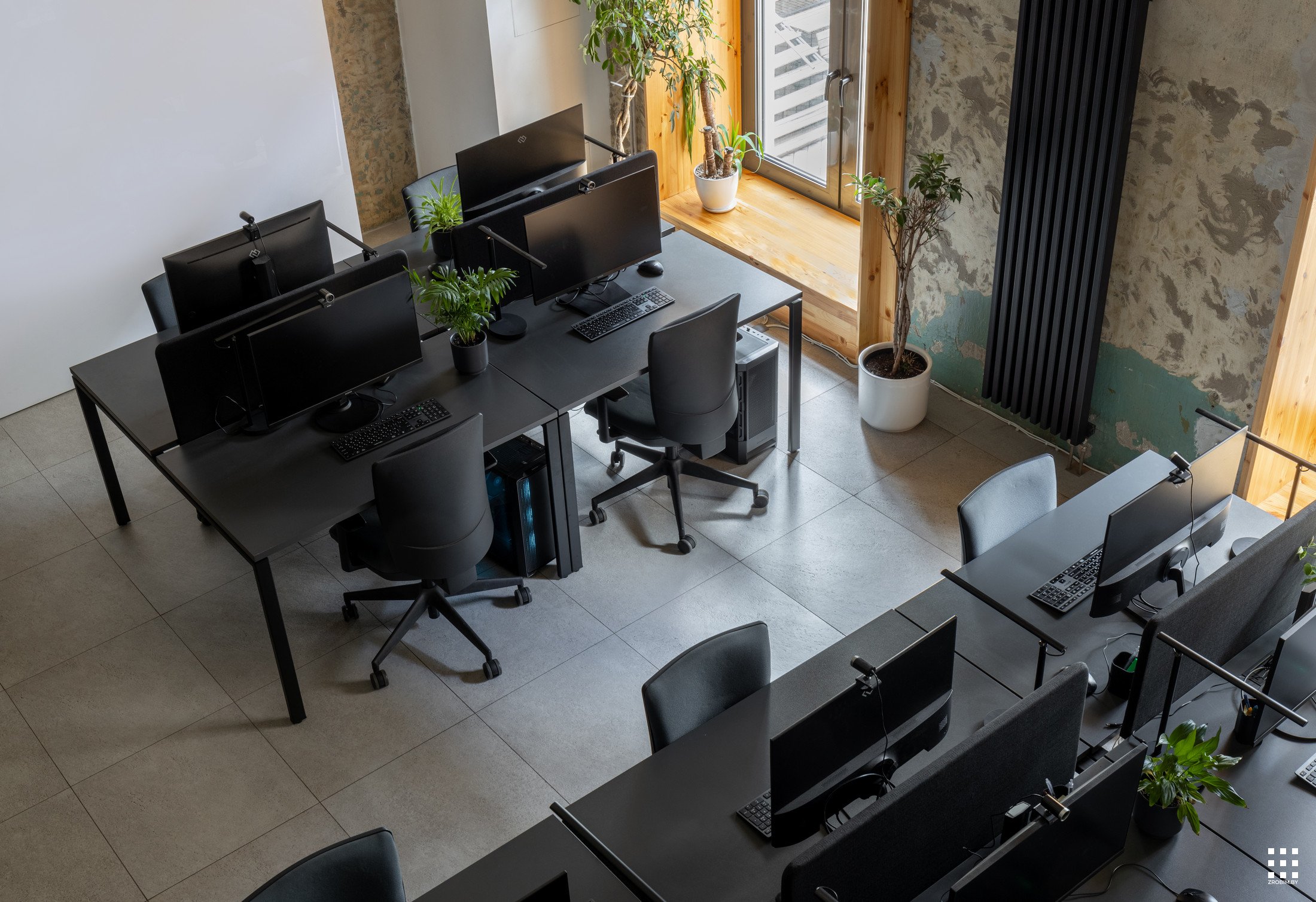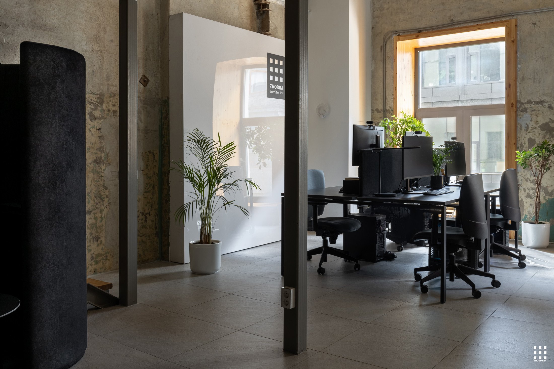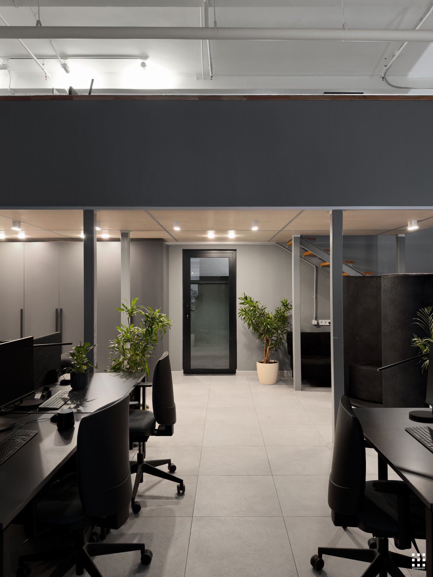Так как площадь небольшая, мы зонировали пространство с помощью интересной бензиновой перегородки, которая выступает одновременно и системой хранения, и ненавязчивой перегородкой. Нашей главной задачей при проектировании офиса было не спорить с пространством, а гармонично в него вписаться со своей уникальностью. Поэтому интерьер офиса минималистичный и функциональный, а дополняет его мебель нашего бренда BY furniture.
