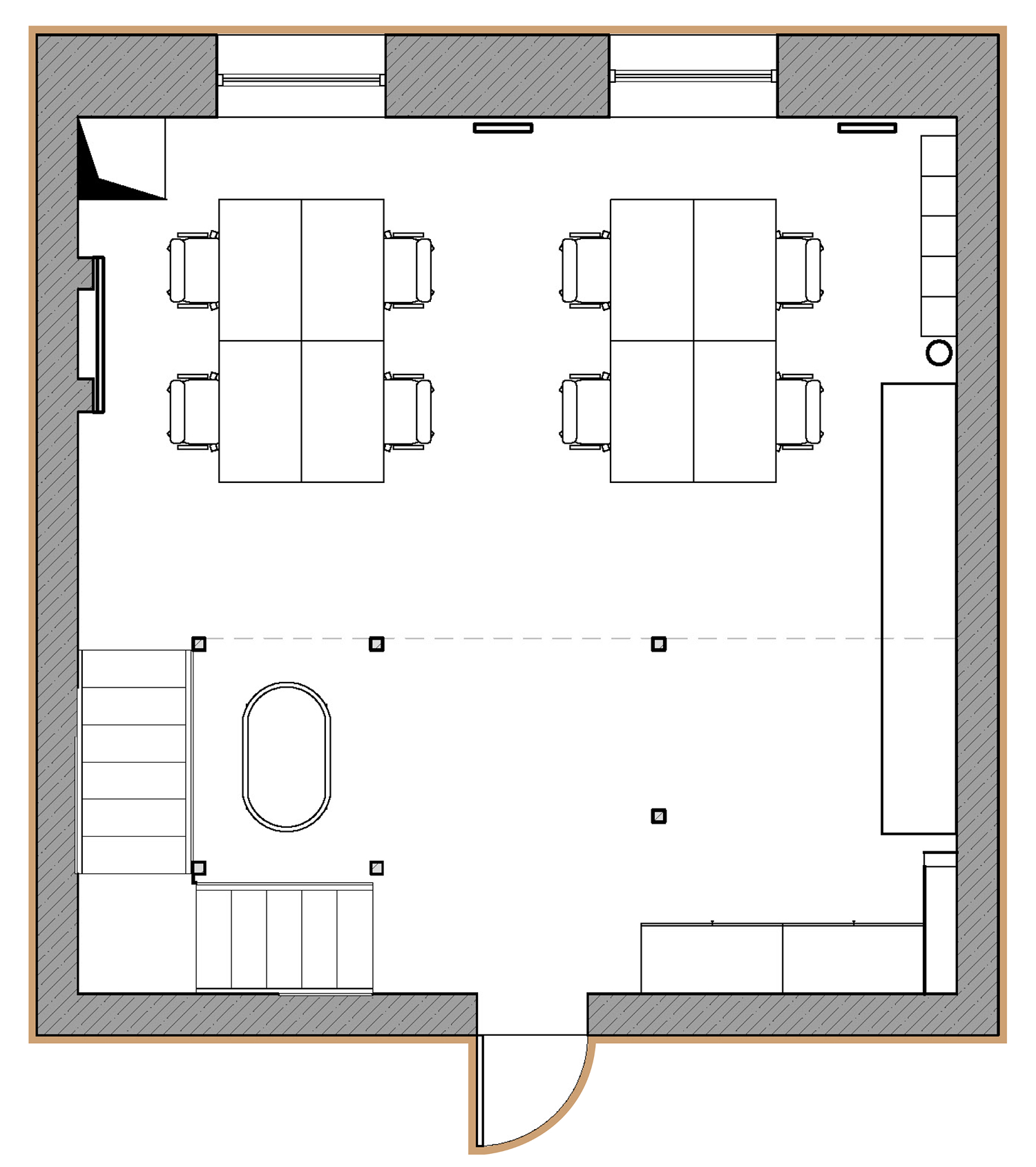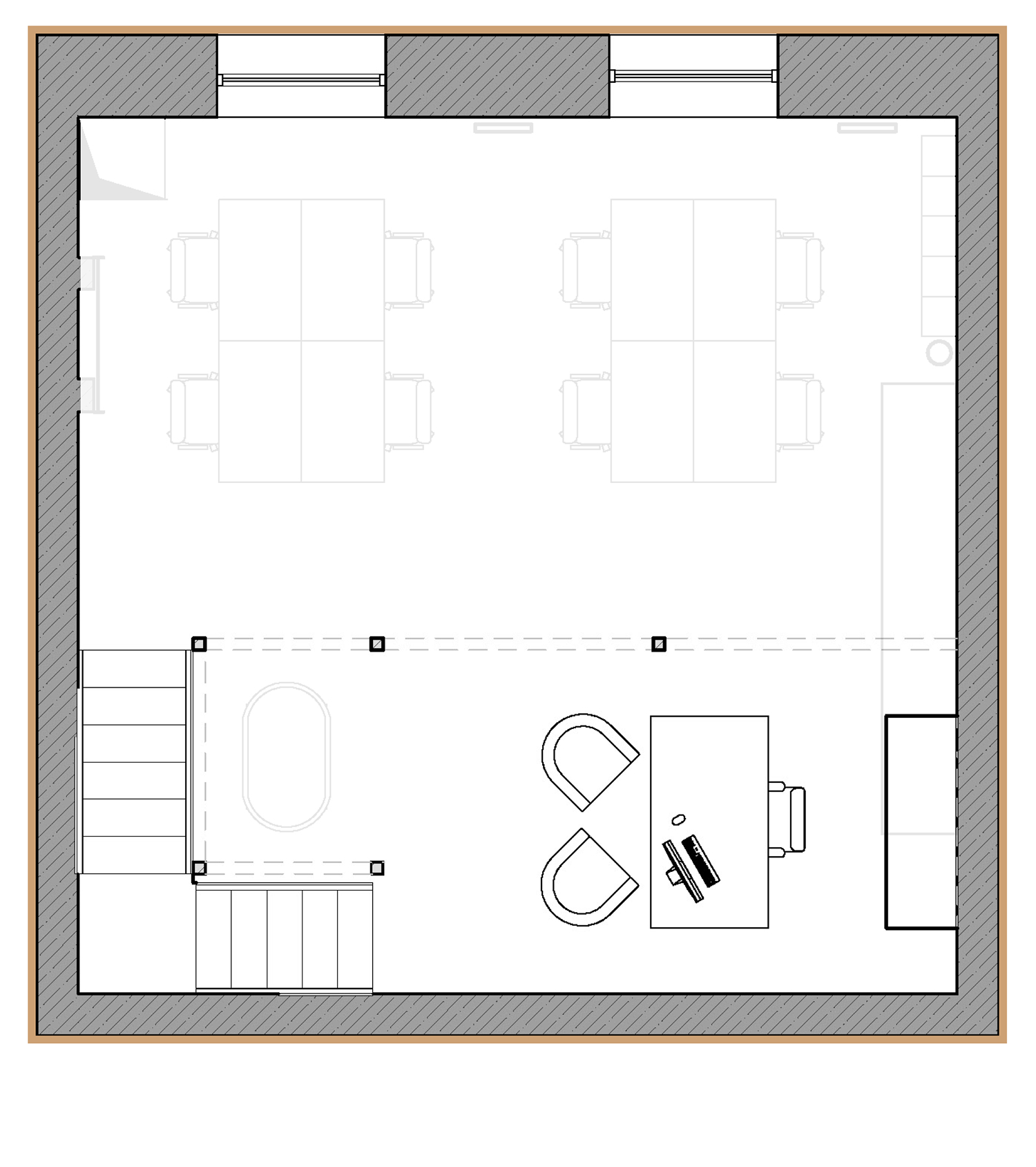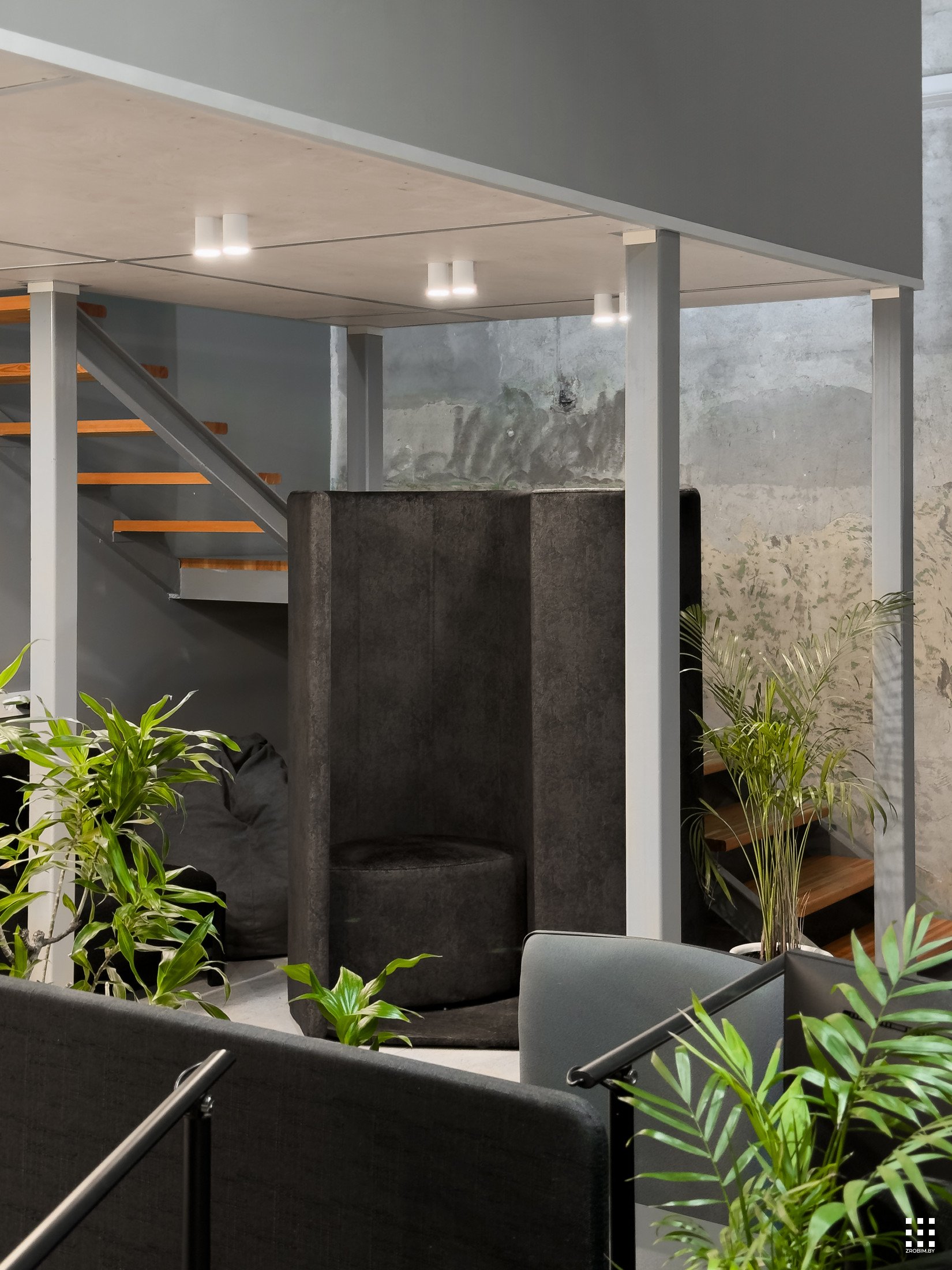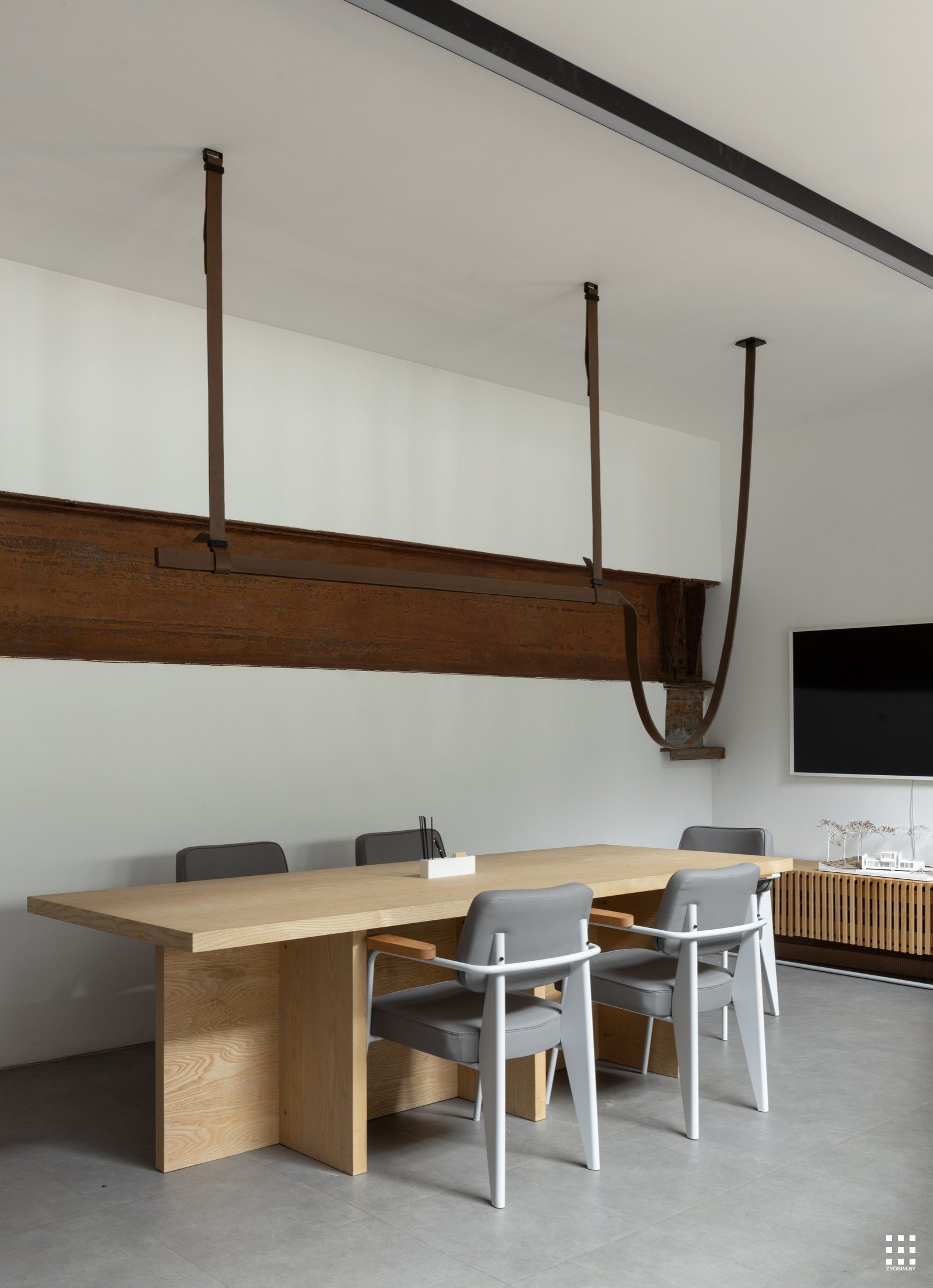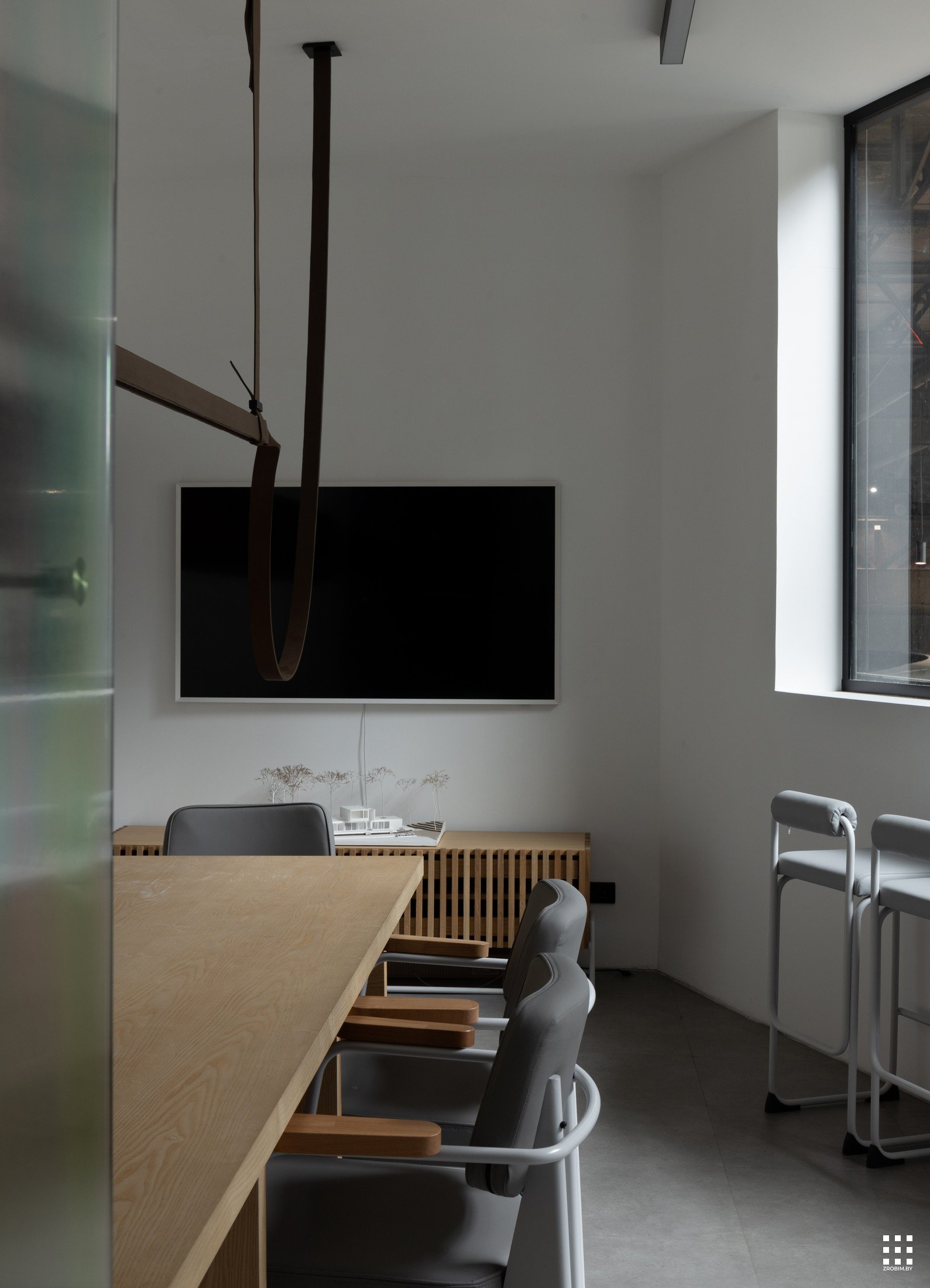 Так как площадь небольшая, мы зонировали пространство с помощью интересной бензиновой перегородки, которая выступает одновременно и системой хранения, и ненавязчивой перегородкой. Нашей главной задачей при проектировании офиса было не спорить с пространством, а гармонично в него вписаться со своей уникальностью. Поэтому интерьер офиса минималистичный и функциональный, а дополняет его мебель нашего бренда BY furniture.